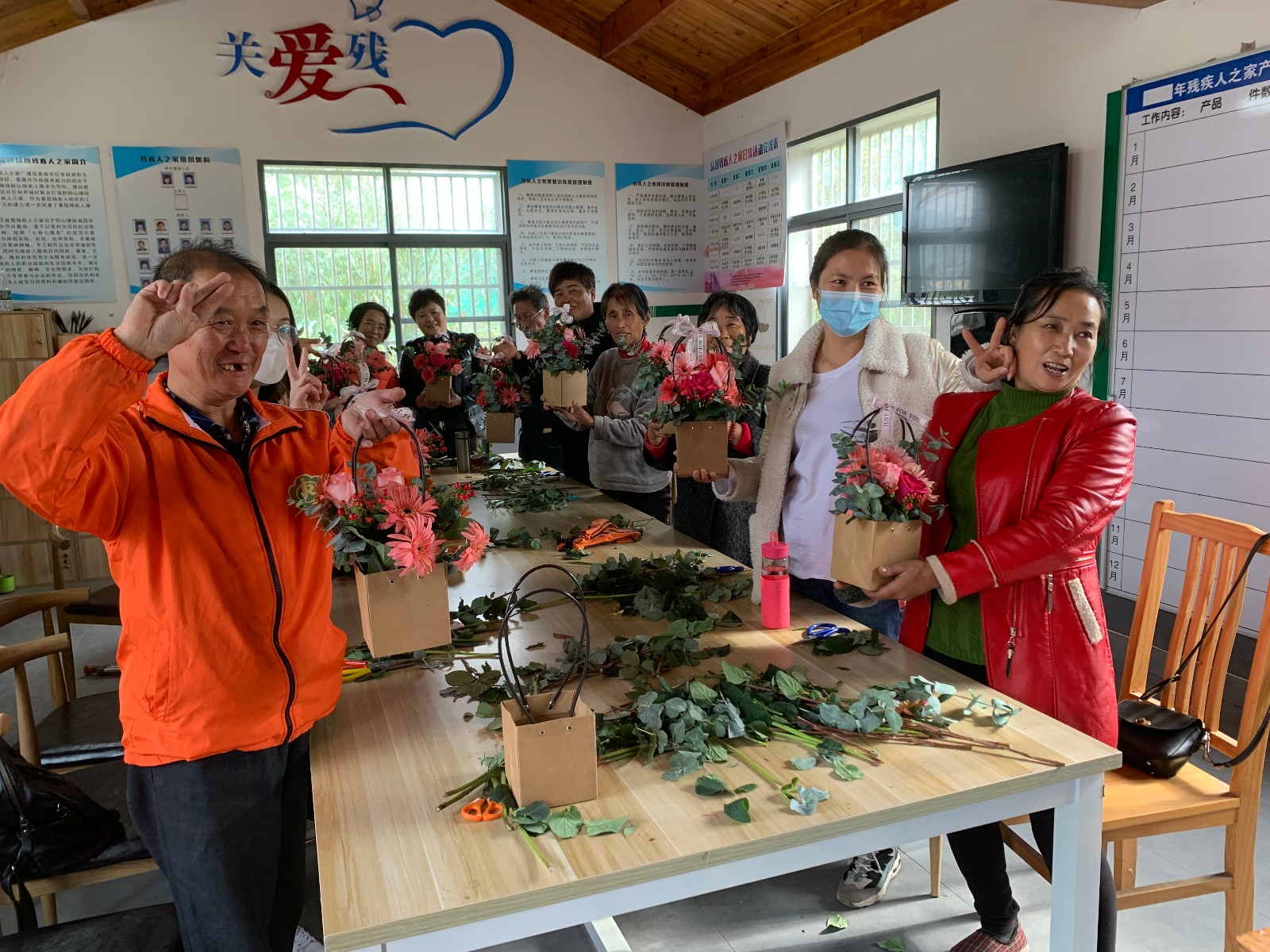 近日,为丰富残疾人文化生活,愉悦残疾人身心健康,惠山区阳山镇陆区社区组织益智残疾人之家开展了插花公益活动。