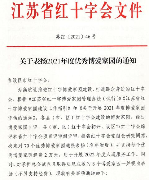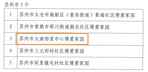 [苏州市]大南邻里中心博爱家园荣获2021年度江苏省优秀博爱家园