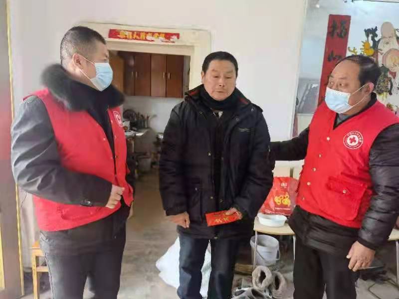 元月9日下午,射阳县红十字会爱心家园志愿服务队一行15人,分两路走访慰问特困家庭,给他们每户送去500元慰问金和米、油等生活必需品。