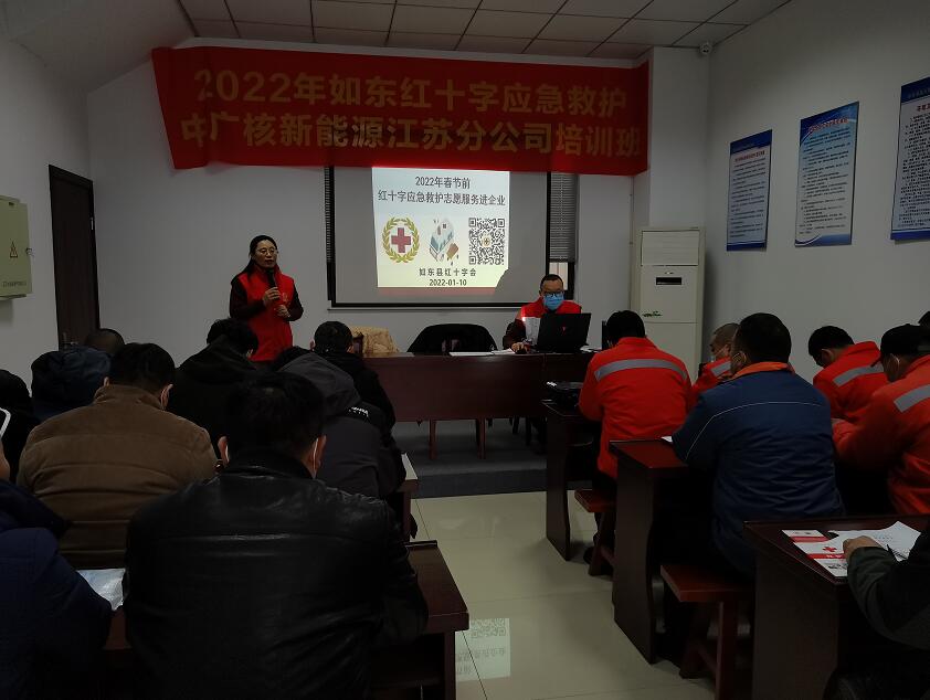 在2022年春节来临之前,如东县红十字会组织开展应急救护志愿服务活动,满足中广核新能源江苏分公司安全生产急需,组织50多位技术人员开展初级救护员培训,用心服务保障, 助企健康发展。