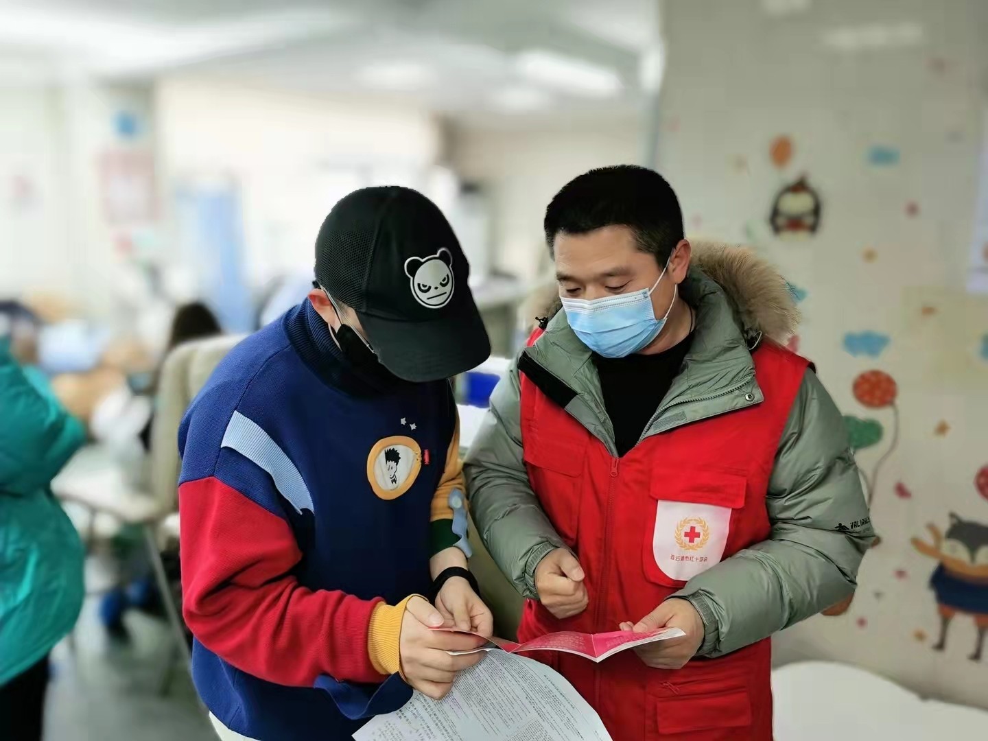 1月9日,连云港市红十字会组织志愿者在市中心血站开展志愿服务活动。