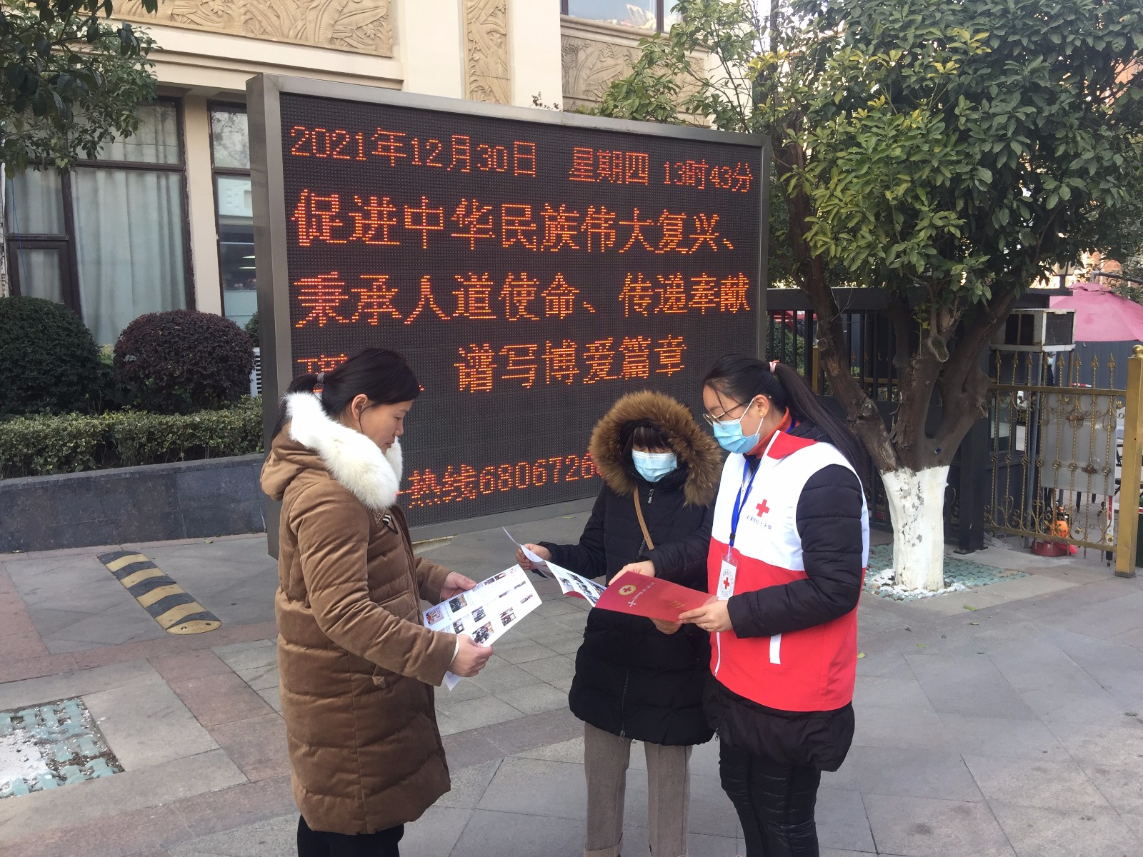 三、 基层组织,贯彻落实,全力推进。各红十字冠名(团体)医院积极宣传。市第二人民医院、市中医医院、市康复医院等在门诊大厅、各诊室候诊区等场所的醒目位置张贴宣传海报,利用大电子屏循环播放《条例》宣传视频。市精卫中心要求全院工作人员以科室为单位组织学习《条例》内容,将《条例》精神的领会纳入红十字心理救援队的日常管理考核工作。各冠名医院红十字会利用“世界急救日”“艾滋病日”“元旦”等重要节日期间,在广场、社区、车站等人流密集区组织开展《条例》宣传普及活动,面向市民发放宣传页;将《条例》宣传贯彻工作与应急救护培训知识普及、造血干细胞捐献采集、志愿服务进社区、遗体器官捐献宣传等工作相结合,充分发挥红十字会员、志愿者、冠名医疗机构传播辐射作用,营造文明守则、互助友爱的良好社会氛围。