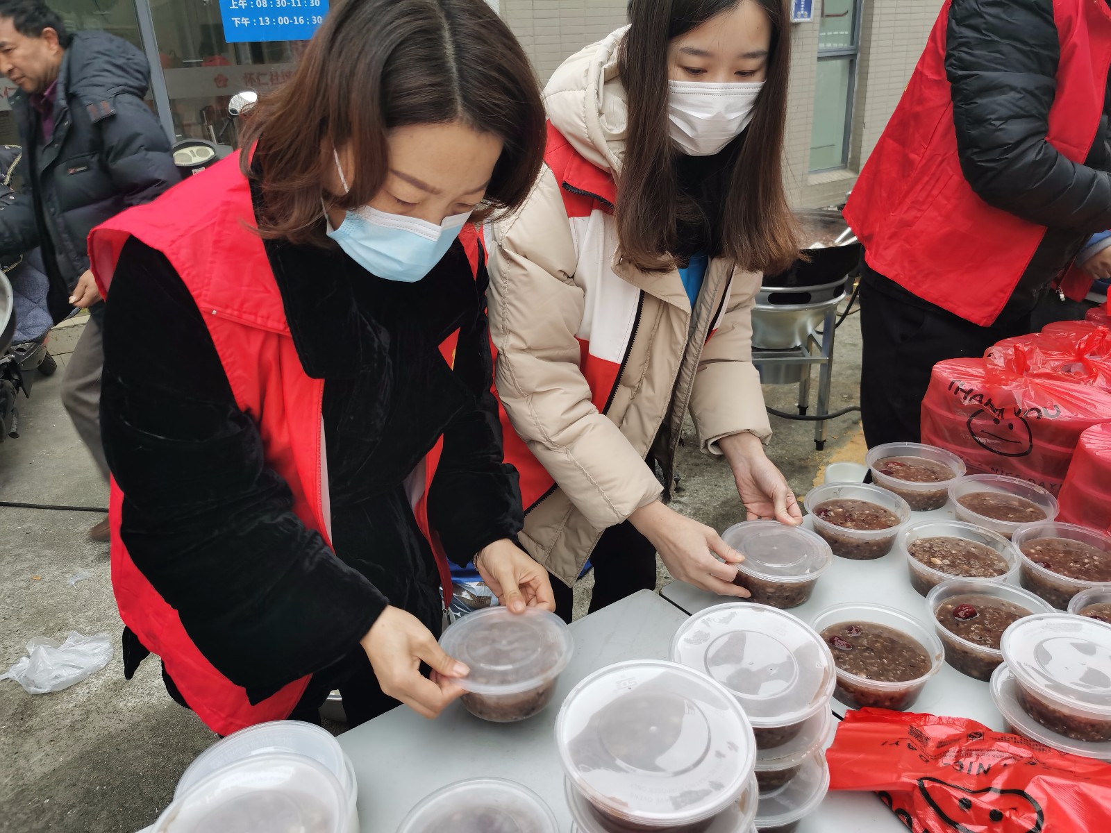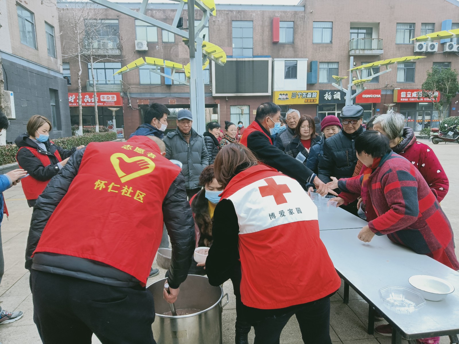 博爱家园工作人员、红十字志愿者们一大早就忙碌起来,打包好精心熬煮好的腊八粥,送到社区高龄老人、孤寡老人、失独家庭、小区保安等手中,让他们感受到来自社区大家庭浓浓的节日关心和祝福,爱的暖流在冬日里涌动。