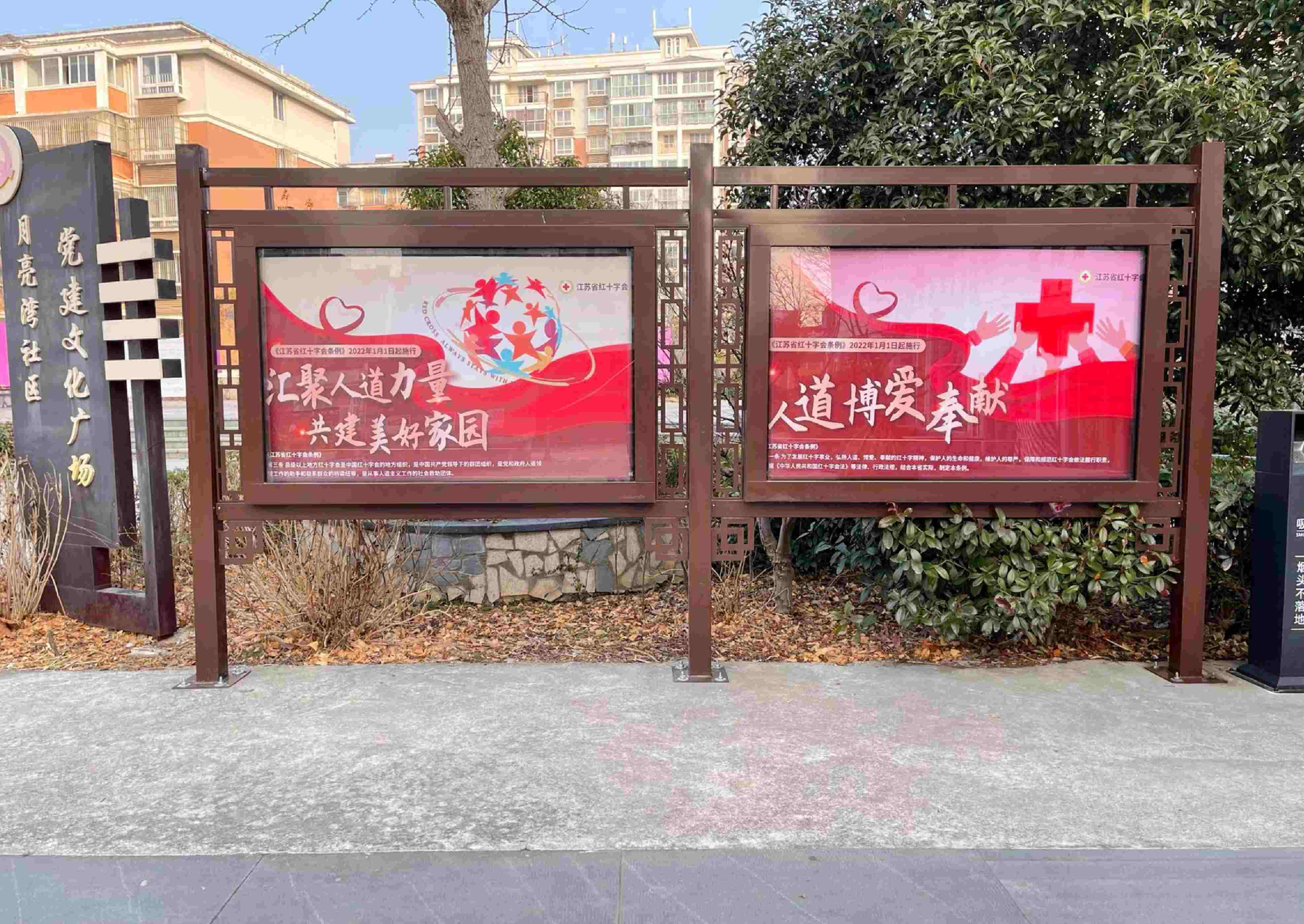 月亮湾社区志愿者通过电子屏幕播放、广告牌展板、宣传横幅等多种方式向辖区居民讲解江苏省红十字会条例相关常识,并组织了社区居民及红十字会志愿者对江苏省红十字会条例内容进行学习,从而增进居民群众对红十字会的认识。
