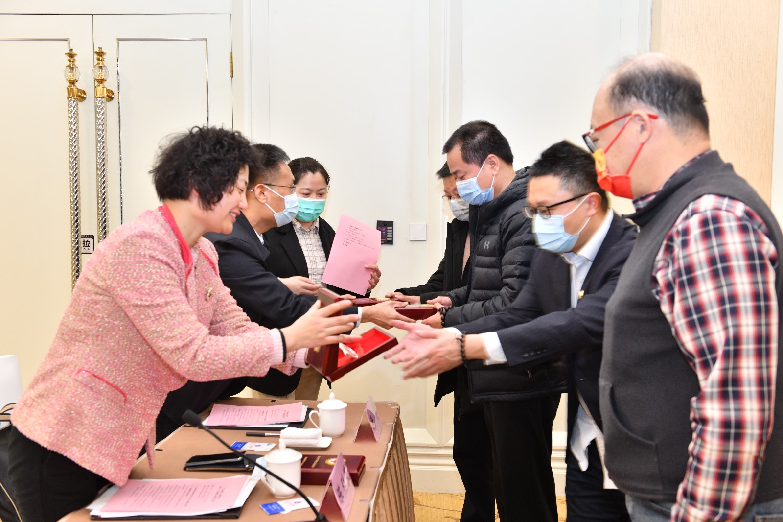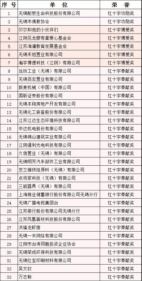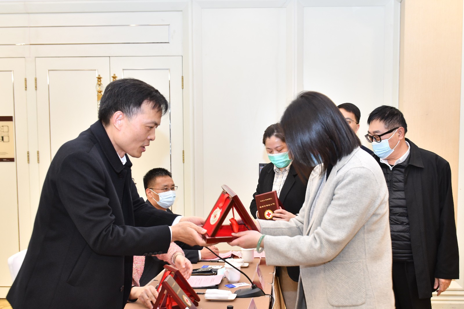 政府副市长、市红十字会会长秦咏薪向100万以上捐赠单位颁发“红十字功勋奖”奖章;市政府办副主任、驻南京办事处主任郭平向50万以上捐赠单位颁发“红十字博爱奖”奖章;市红十字会领导向10万元以上捐赠单位代表颁发“红十字奉献奖”奖章。