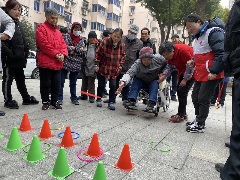 为加强残疾人文化建设,丰富残疾人的文体生活,展现残疾人精神风貌,2022年1月10日下午,梁溪区惠山街道红十字会联合惠山街道残疾人联合会在水车湾社区的小游园共同举办了“暖冬助残,爱满锡城”新年运动会。运动会设置了套圈、夹弹珠、运球、飞镖等6个项目,30余名残疾人作为运动员参与比赛的角逐。