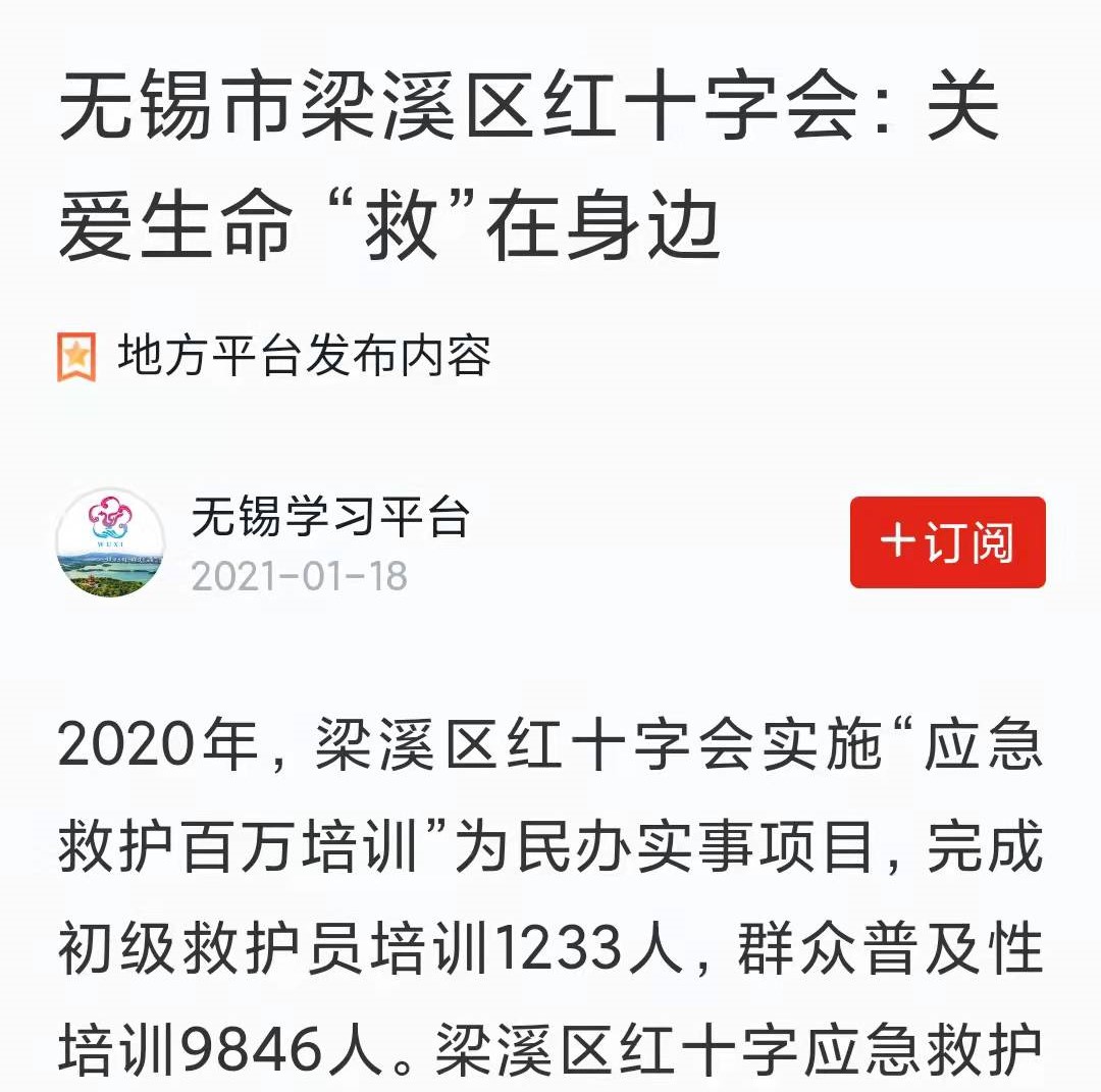 示范基地显成果。2021年,梁溪区红十字会应急救护培训基地获评省级示范基地。2021年,共有34个企事业单位和学校来基地参加初级、普及和CPR➕AED培训29场次,培训人数超1300名。省内外多批次同行来基地考察交流。