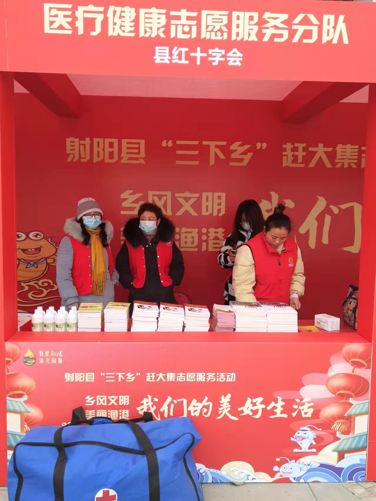 元月21日下午,射阳县红十字会参加该县县委宣传部牵头组织的全县“三下乡”赶大集志愿服务活动,以应急救护培训实操和急救知识宣传妆点活动现场。