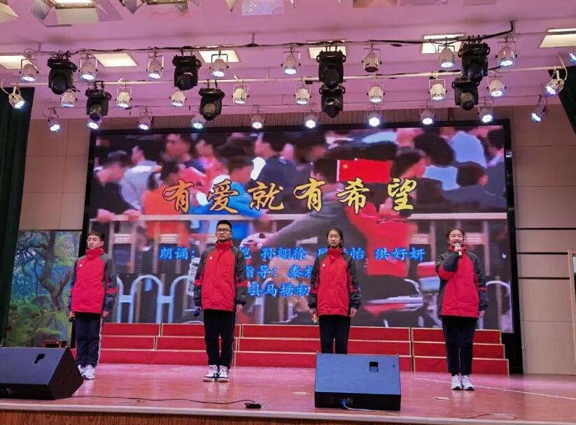 马塘初中的4位同学用饱含深情的朗诵表达了他们对红十字爱心人士慷慨捐助的感激之情和努力学习、报效家乡的信心和决心。