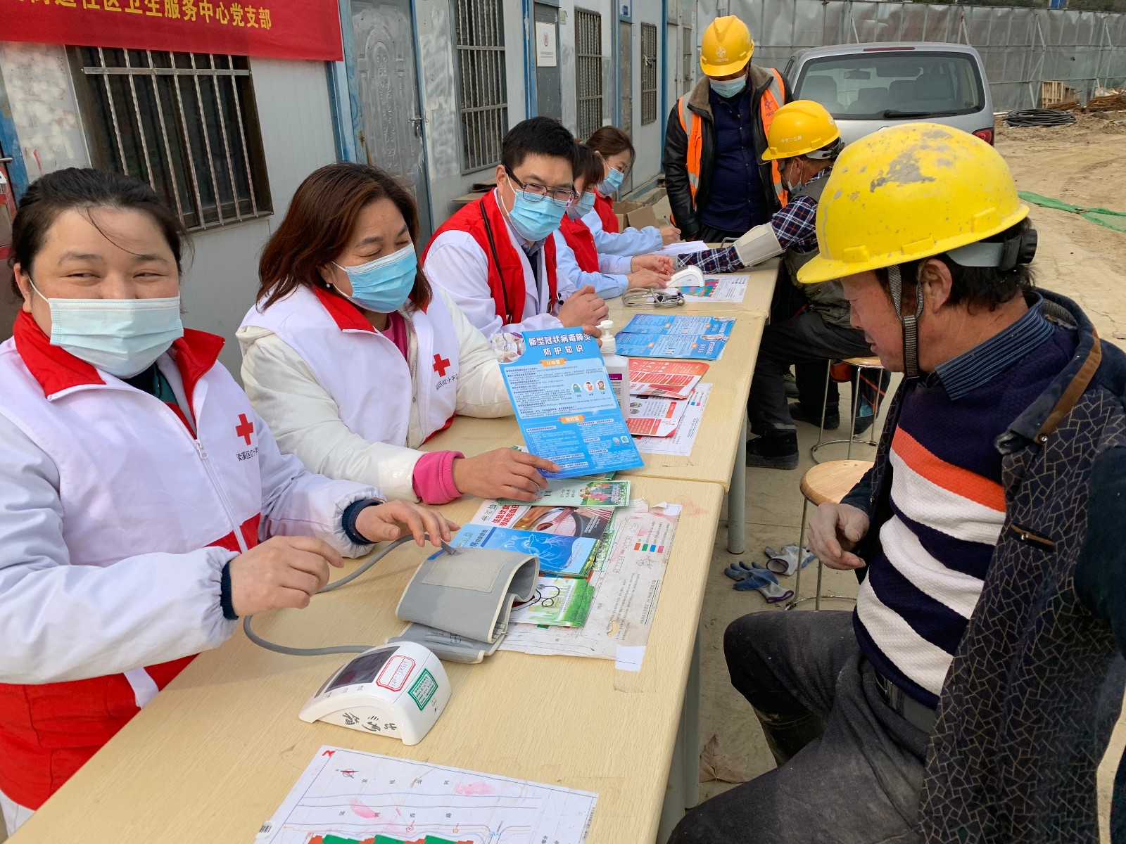 活动现场,红十字志愿者们给外来务工人员发放留锡过年倡议书,同时宣传防疫知识,细致地介绍日常保健方式。对务工人员提出的核酸检测问题耐心讲解。随后,红十字志愿者们免费为项目部员工测量血压,帮助他们更加了解自身健康状况,受到了员工们的一致好评。