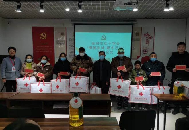 在九里新苑社区服务心,举行了市红十字会“博爱彭城•暖冬行动”捐赠仪式,现场向12户生活困难群众发放救助款物,为每户送去了500元的慰问金(品)。市红十字会党组书记、常务副会长吴颖入户走访看望困难家庭,将500元的慰问金(品)送到他们手中,并向他们致以诚挚问候和新春祝福。