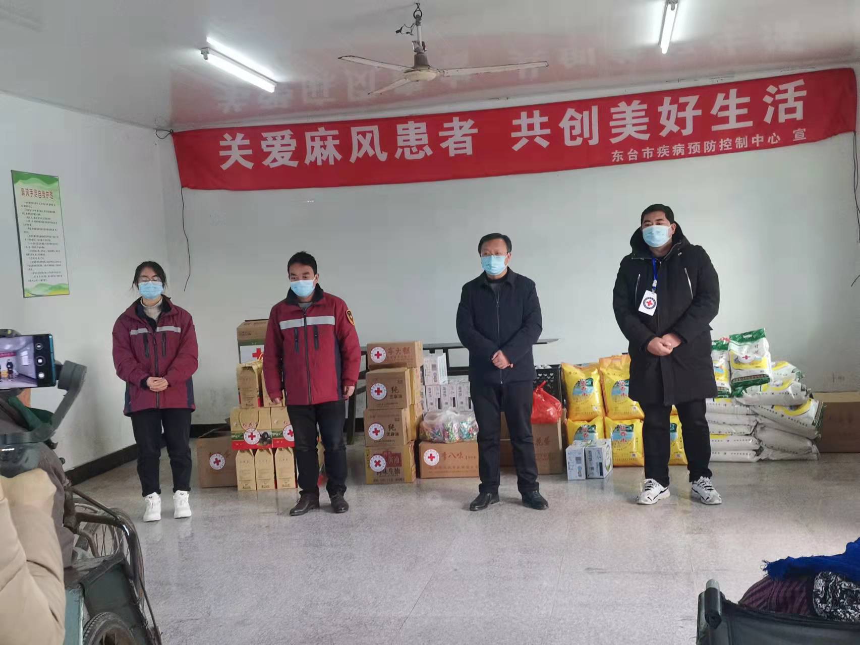 在麻风节前市红十字会携手市疾控中心组成慰问组,来到麻风康复中心开展“新春送温暖”活动,为康复中心老人带来油、米、洗手液、牛奶等生活物资。活动现场,志愿者们还与休养老人一起贴春联、唠家常,并提前送上新春的祝福。