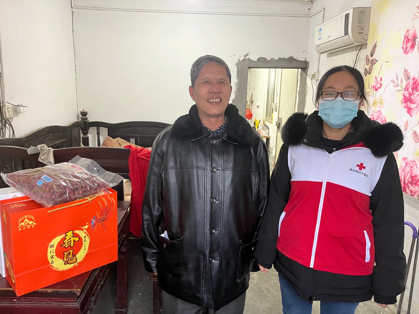 1月27日,区红十字会常务副会长严红兴带队来到长安街道长乐社区群众家中上门走访慰问。严红兴关心询问了潘大叔的疾病治疗和康复情况,叮嘱他保重身体,增强康复信心,并送上慰问金和过节物品。在钱桥街道盛峰社区,严红兴给张大叔一家人送上了春节慰问金和新春祝福。