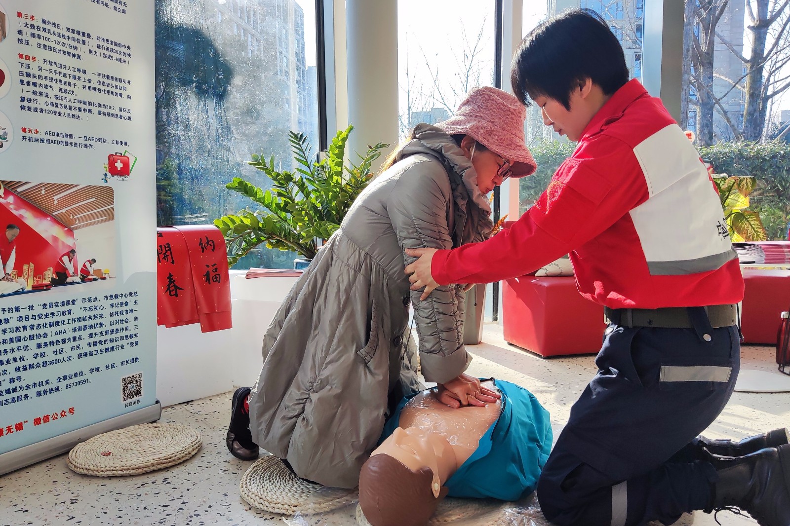 上午的活动刚结束,志愿者们又马不停蹄来到无锡市党建主题公园开展服务,为市民群众讲授红十字应急救护技能。