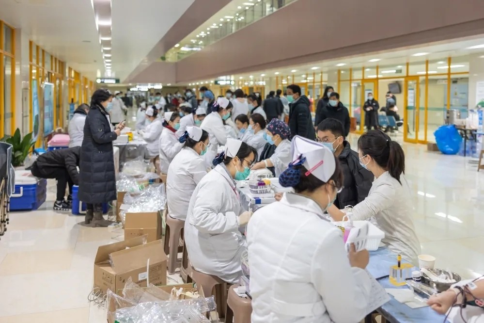 2月16日在城中院区,献血活动现场同样温馨而热烈,有一早交完班献上血还要匆匆投入工作岗位的医生护士,有刚下夜班拖着疲惫身躯的医务工作者,也有休息在家特地赶来献血的职工,其中还不乏在院学习、实习、规培、进修的医护人员和工勤人员;有已经连续多年献血的“献血达人”,也有初次奉献爱心的“献血新星”。大家热情十足,有说有笑,为自己能对社会做一点力所能及的事感到满足和自豪。
