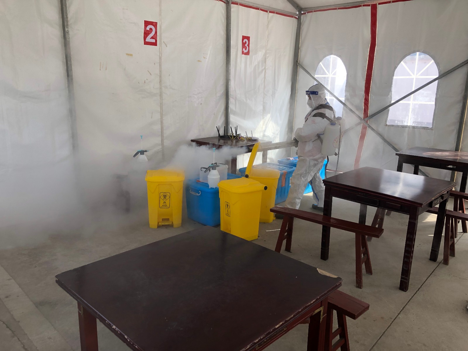 为了助力全市疫情防控大局,市红十字赈济救援队迅速行动,2月21日,组织11名队员深入凤翔实验学校和锡山区羊尖镇16个核酸采集点、部分社区的博爱家园进行预防性消杀。