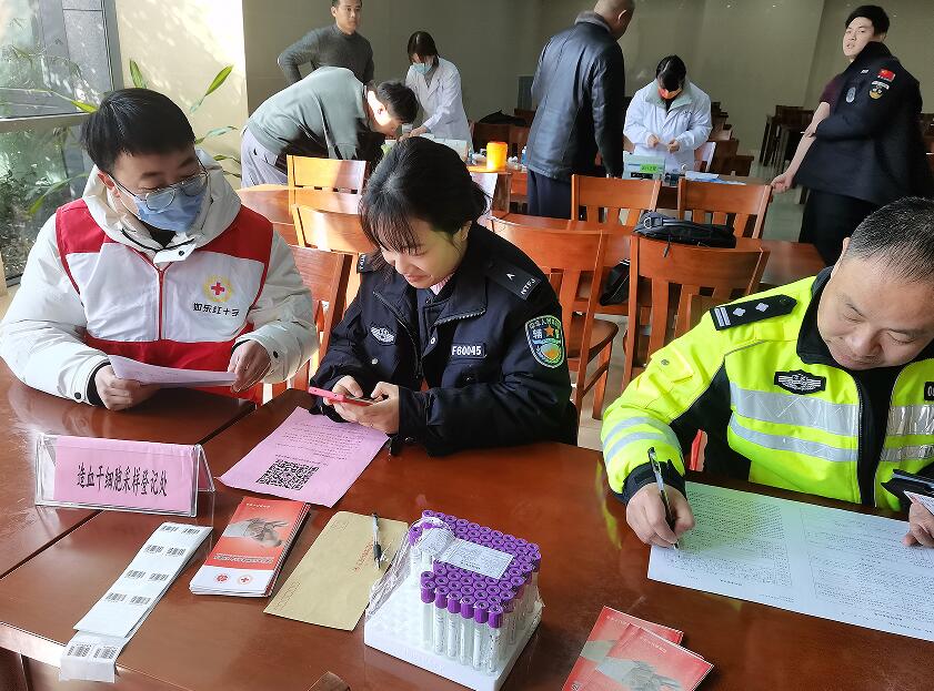 2月24日-25日,如东县红十字会无偿献血和造血干细胞捐献宣传志愿服务队走进如东县公安局开展2022年“以警之名 热血青春”志愿服务活动,亲切的感受到了他们参与爱心公益活动的铁汉柔情、大爱情怀,广大公安民警、特巡警、辅警,积极无偿献血、踊跃报名造血干细胞捐献采样,两天共计170人无偿献血55400毫升,29人通过采集造血干细胞血样加入了中华骨髓库,成为了捐献造血干细胞志愿者。