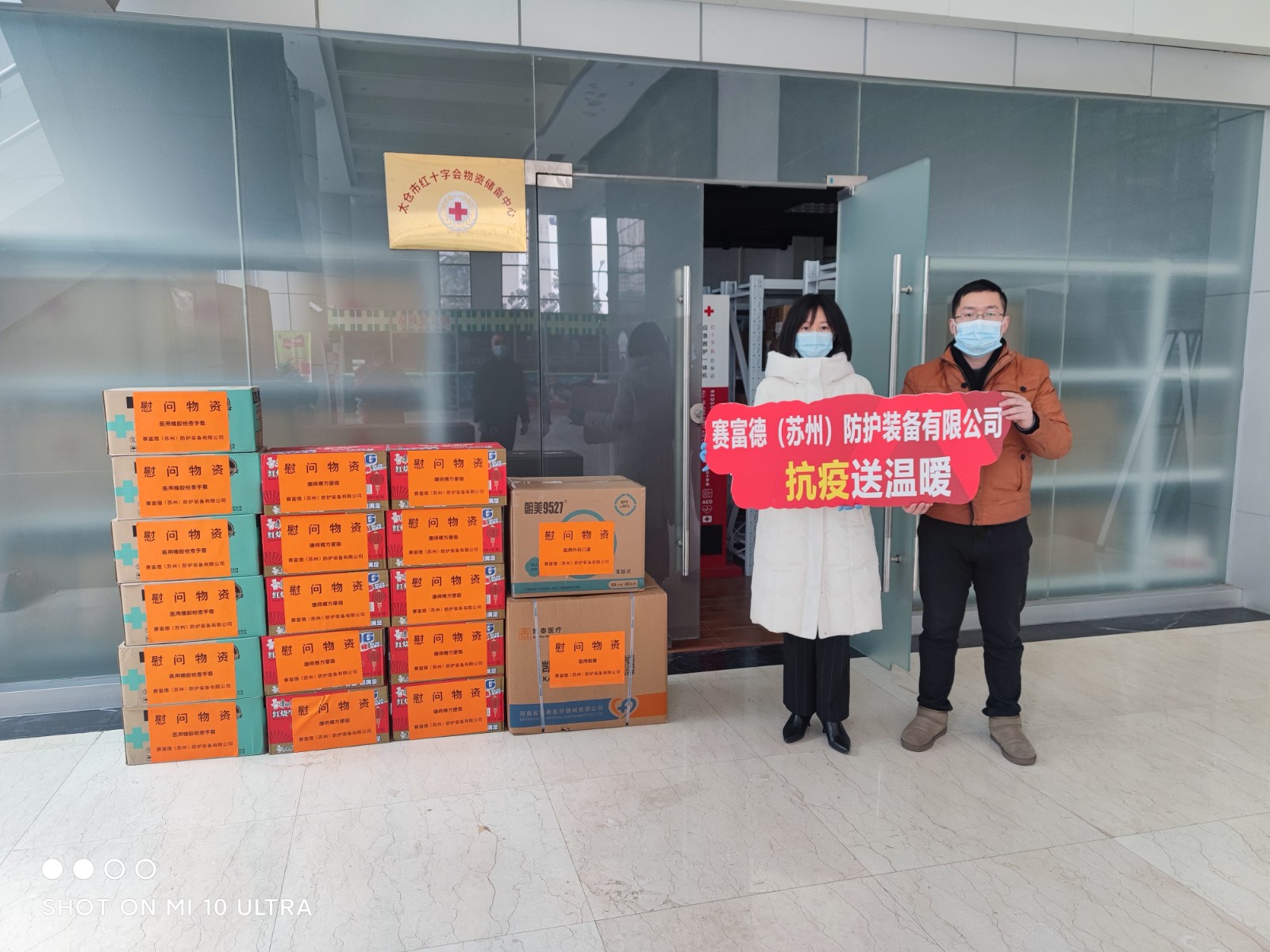 2月23日,赛富德(苏州)防护装备有限公司捐赠了6000只检查手套、1000只外科口罩及方便面等物资用于支持抗击疫情,公司负责人也表示,疫情就是命令,防控就是责任,广大医护和志愿者奋战在核酸检测各个站点,保障了疫情防控工作的有序开展,公司尽己所能,为后勤保障尽一份力。