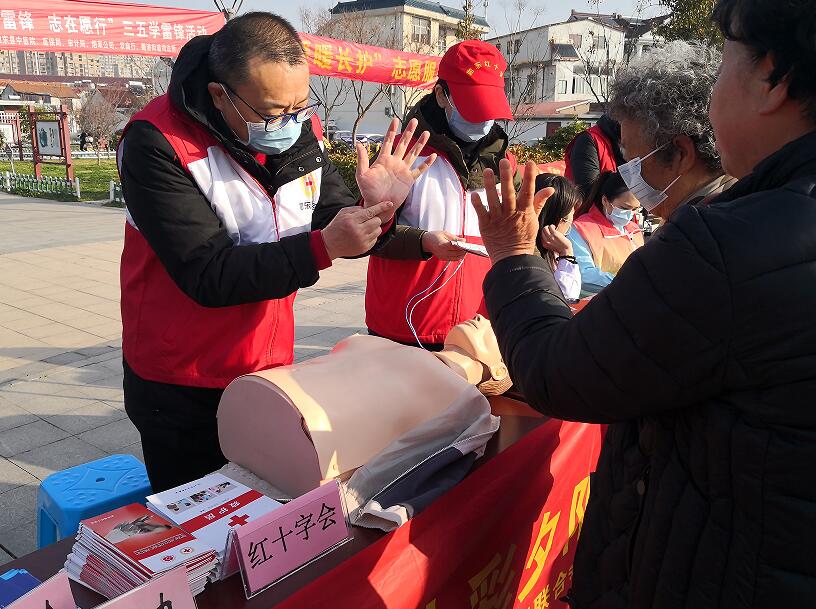 各镇(区、街道)红十字会也联合相关部门,开展了形式多样、内容丰富的“3.5”学雷锋纪念日志愿服务活动。如:2022年3月4日,洋口镇红十字会在三江口村广场联合三江口村、民政、残联、司法所、建设、农业农村、妇联等部门,开展新时代文明实践之“弘扬&39;人道、博爱、奉献&39;的红十字精神”“三五”学雷锋活动,向现场群众宣传“三救三献”知识,传播了红十字文化,得到了基层群众的一致认可!