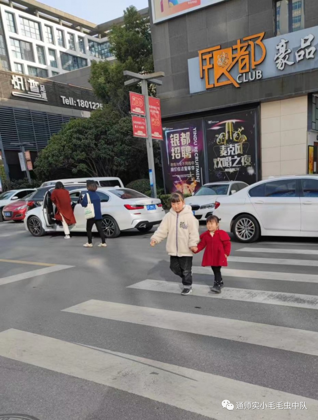 “小雷锋”们在家长的伴行下开始了学雷锋行动。