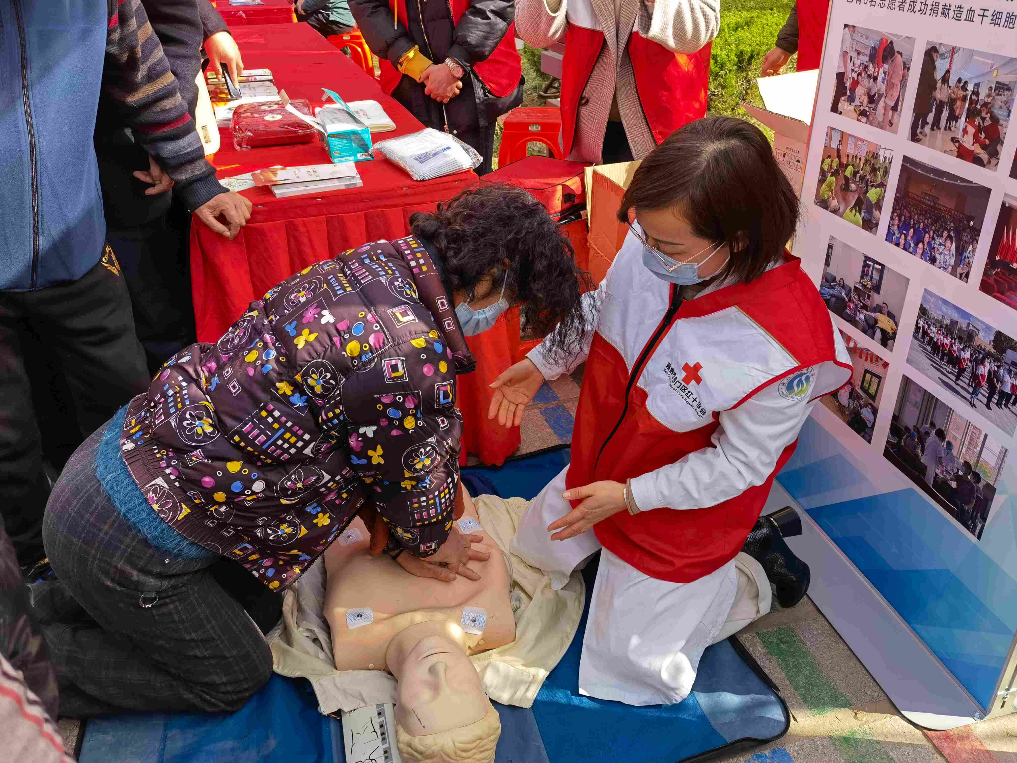 活动现场,红十字志愿者以最大的热情服务市民群众,通过发放各类宣传折页、市民安全手册以及纪念品,向现场群众宣传应急救护、居家养老、无偿献血、造血干细胞捐献等知识,并耐心解答群众提问,共发放宣传资料500余份。现场还安排红十字应急救护培训老师演示、教授心肺复苏技能的操作要领,每一名成功学会心肺复苏的群众都获得一份急救包。