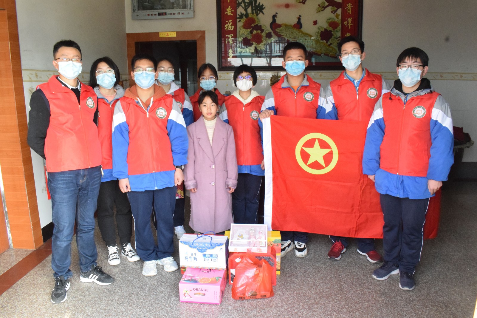 上午9点,前黄实验学校九年级团员、辅导老师、前黄初级中学八年级的少先队员以及常州市武进前黄关爱老人公益志愿服务队的志愿者们身穿红马甲来到前黄镇漳湟村委臧降上村民小组魏国平家。65岁的魏国平去年年底、今年2月份,33岁的儿子和90岁的母亲相继去世。留下他和老伴照顾读三年级的小孙女。团员们和小志愿者给小雪带去了学习用品、牛奶、水果、玩具、课外书等,小志愿者刘诺一不光带去了礼物,还将自己的200元压岁钱给了小雪,让她购买学习用品。郑老师还给小雪做了心理疏导,鼓励她好好学习,争取用优异的成绩回报爷爷奶奶。