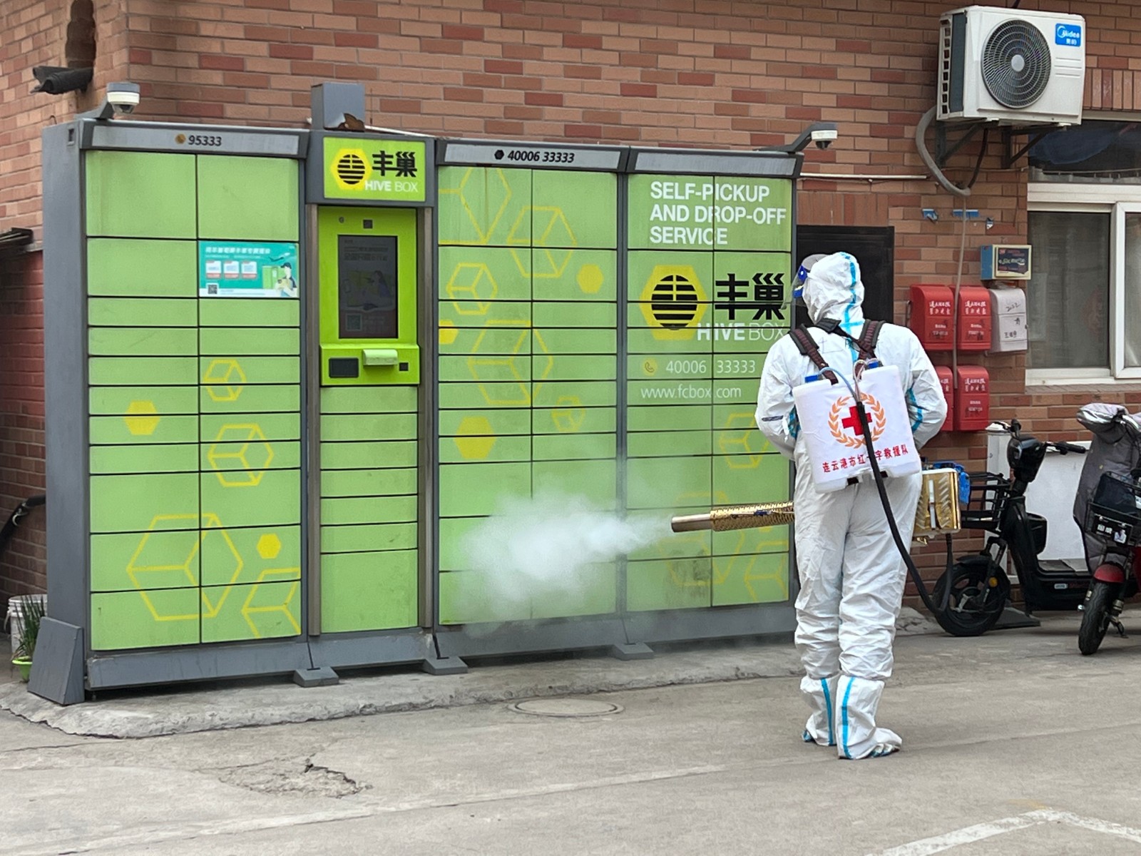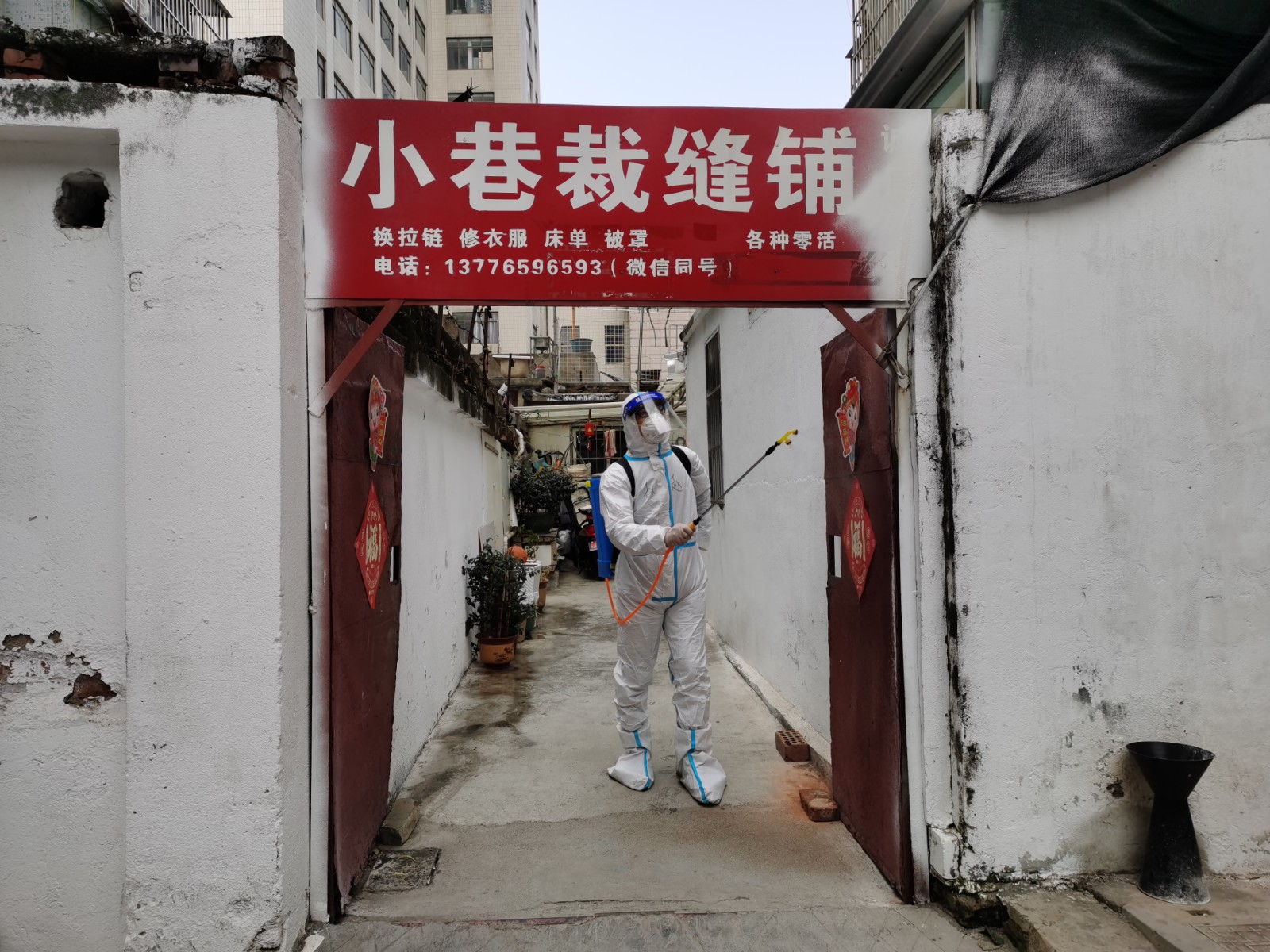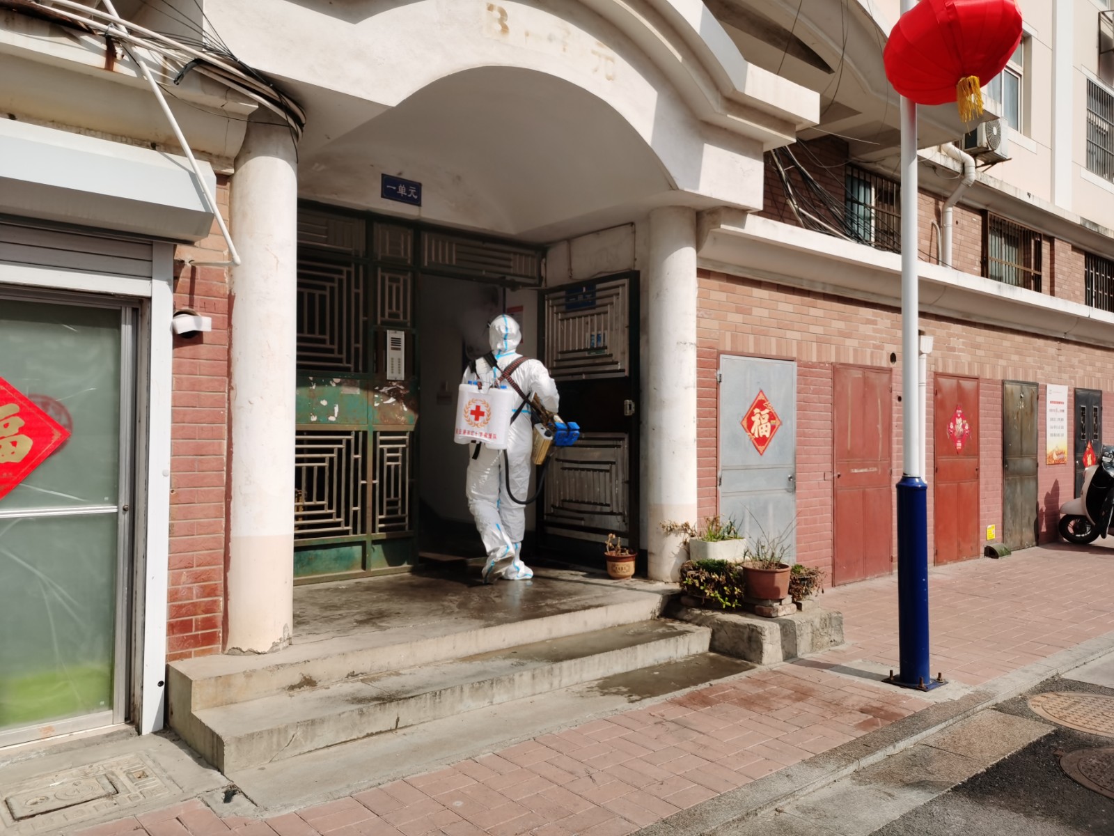 (图为市红十字会党组书记、常务副会长张昊前往社区看望奋战在消杀一线的志愿者们)