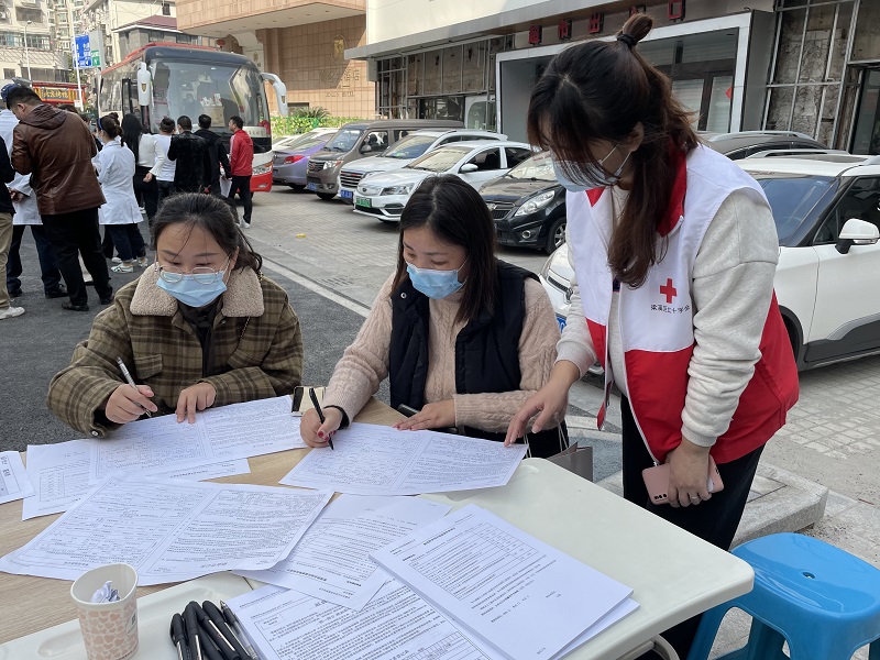 活动现场,红十字志愿者引导献血者有条不紊地进行疫情防控及健康信息填报,认真查验健康码、行程卡,发放水、饼干等补给品。红十字志愿者耐心询问献血者近期身体健康状况, 认真普及献血、造血干细胞捐献知识、捐献流程及重要意义。在红十字志愿者的宣传下,两名志愿者完成了造血干细胞的采样。随后,红十字志愿者也主动加入献血队伍,成为献血大军中的一员。在不到2个小时的时间里,共完成献全血24人、造血干细胞采样2人。大家纷纷表示,能够用自己的热血为社会尽一份力,让有需要帮助的人重拾希望,这样的付出很有意义。