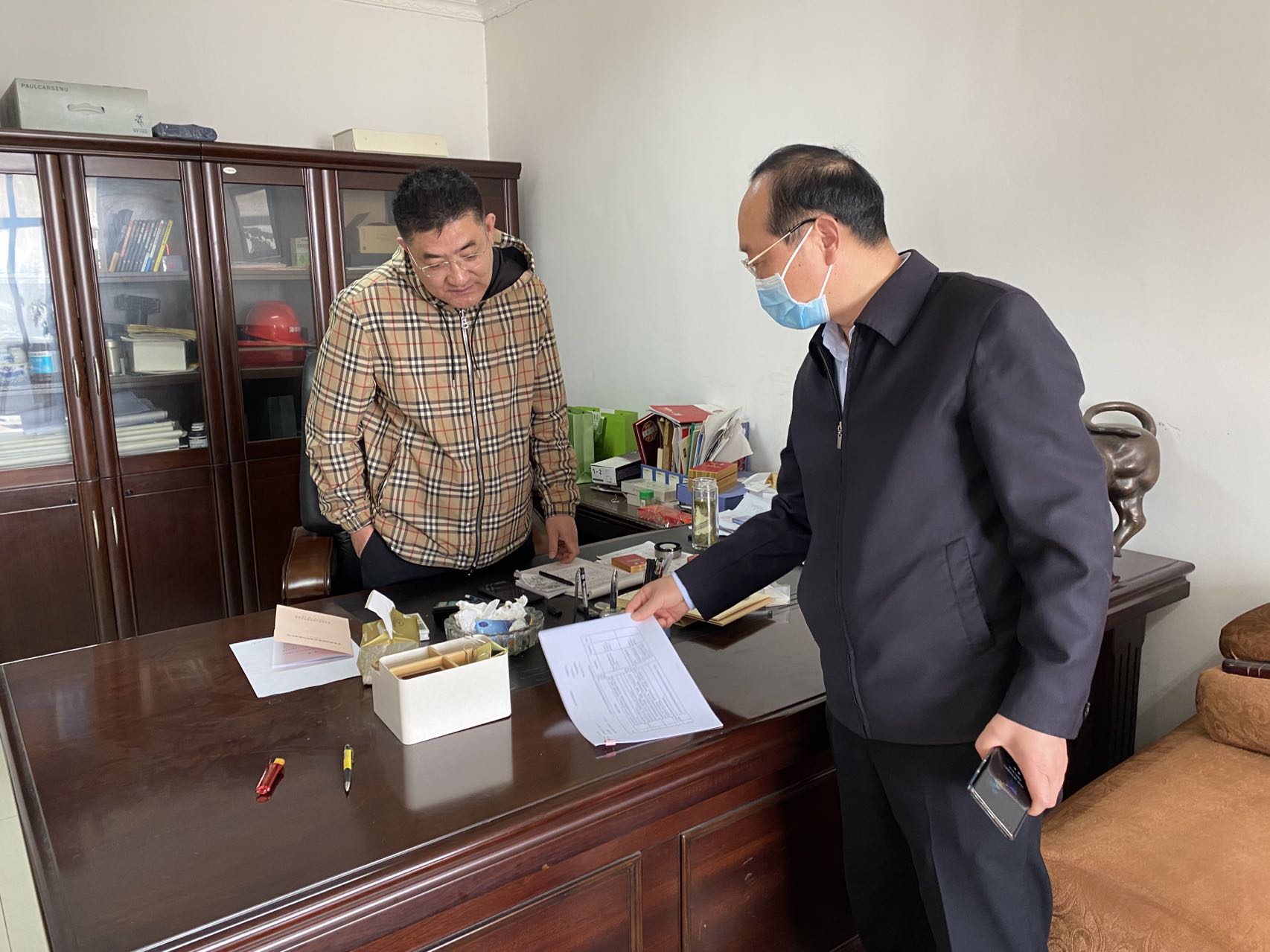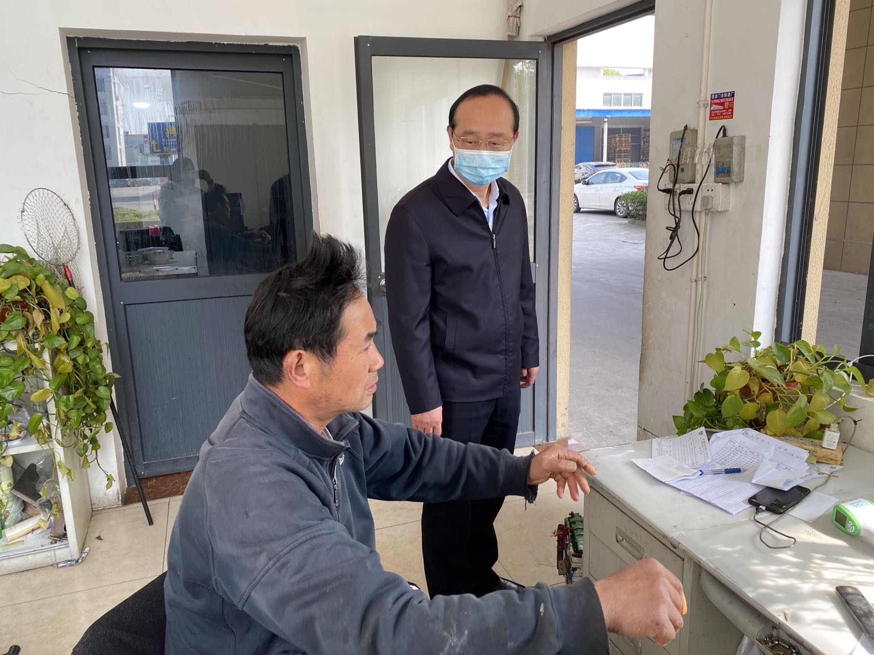 督促指导人员来到企业门卫值班室详细了解企业员工及外来人员“四查一测一登记”制度落实、接收快递消杀等情况,与企业负责人交谈了解作为企业疫情防控“第一责任人”职责的责任落实、对当前疫情防控严峻形势认识是否到位、对企业疫情防控各项要求是否落实到位、疫情防控物资储备是否符合满足30天以上的需求、生产经营状况、安全生产以及还面临哪些困难等等。同时,对督促指导中发现的“四查一测一登记”还不够严格、快递收发消杀还不规范、电子红外测温仪损坏、员工宿舍卫生落实不到位等问题进行了现场督促交办,要求企业限期整改到位。