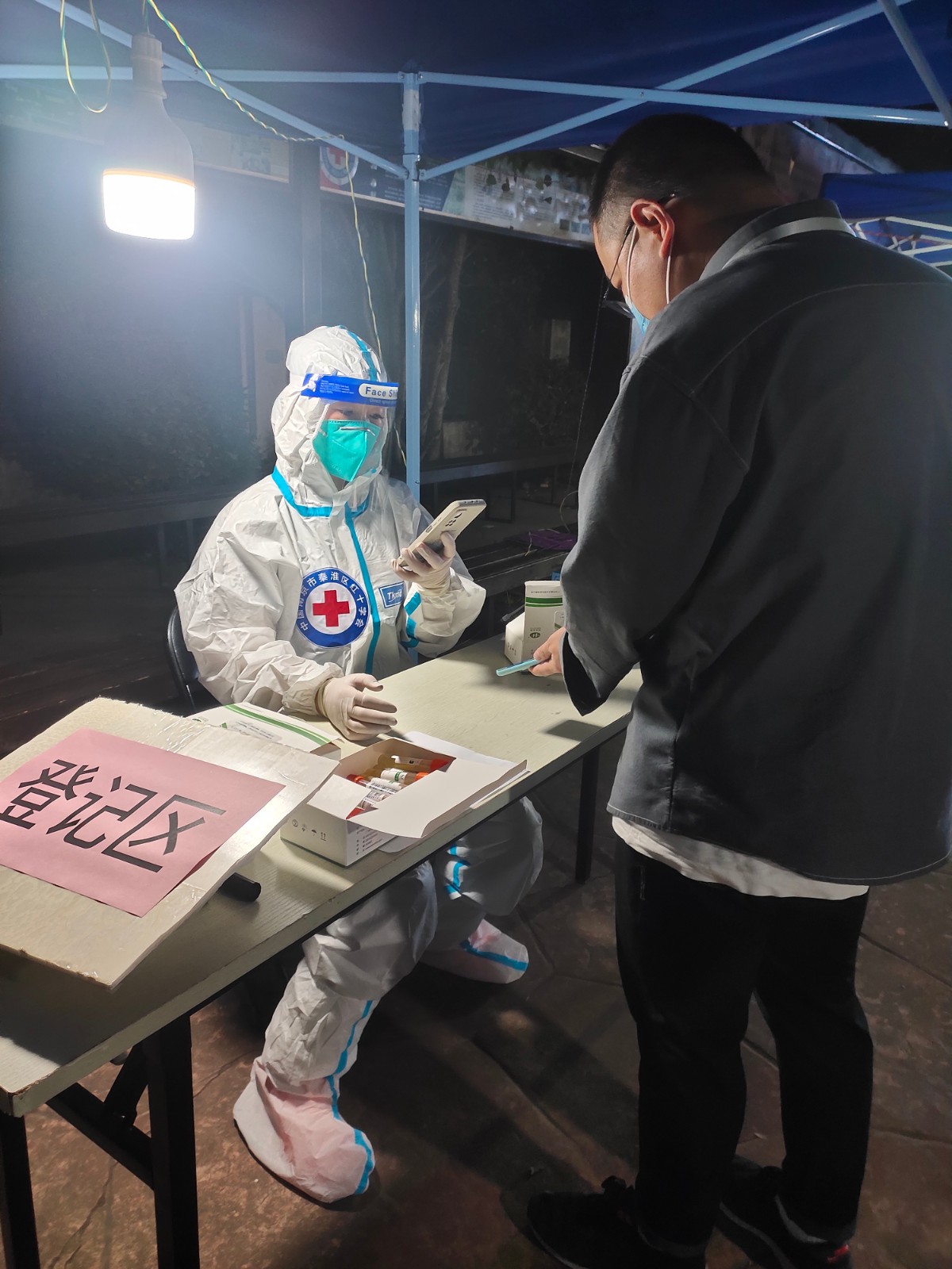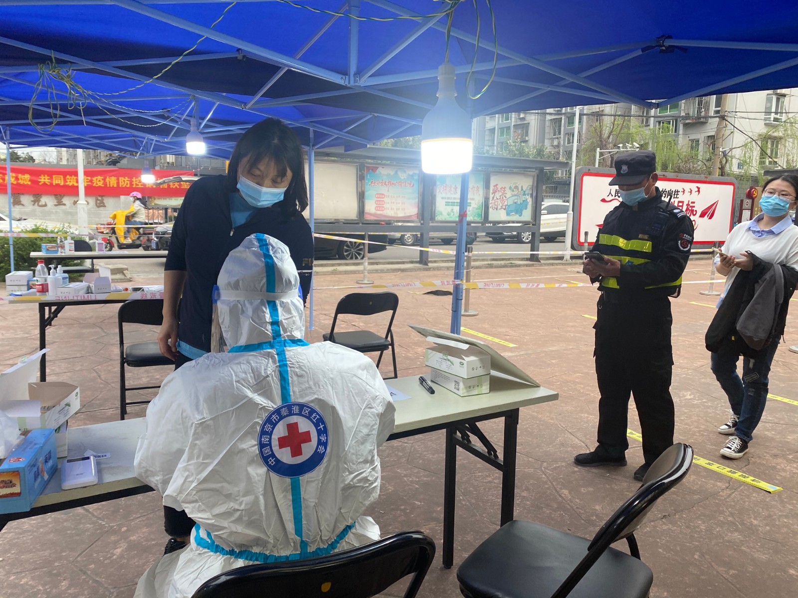 近期疫情形势严峻复杂,3月16日,南京市秦淮区开展新一轮大规模核酸检测排查,红十字志愿者再一次坚定地“站出来”,加入志愿服务的行列。在中华门街道曙光里社区核酸检测点现场,为社区街坊进行核酸检测指引、维持秩序、解答问题、帮助行动不便的残疾人、老年人走绿色通道完成核酸检测,全程细心引导,到处都能看见红十字志愿者们忙碌的身影。核酸检测系统信息录入更是从凌晨6点至晚上23点换人不换岗,由3名红十字志愿者2人一组每4小时换一次班,全副武装在室外温度29摄氏度的岗位上4小时撤岗时都是浑身汗湿了,但没有叫一声苦与累。