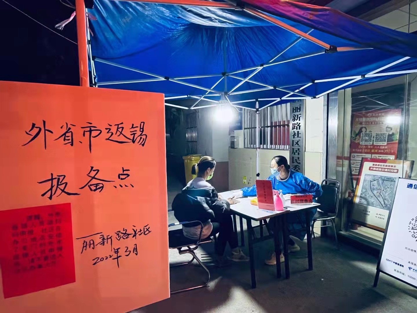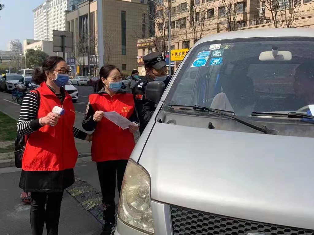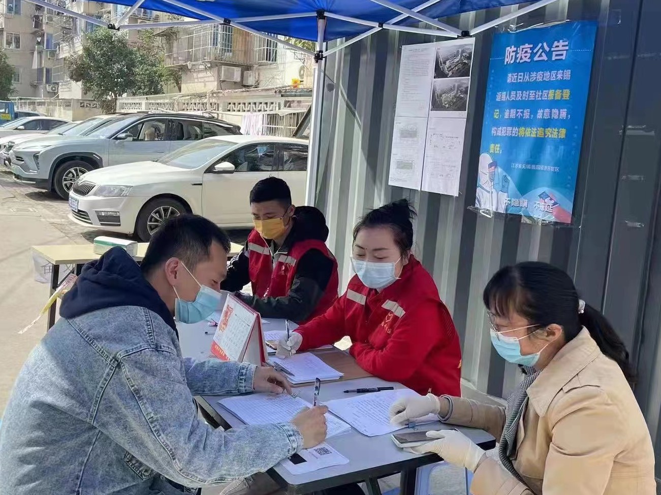 组织20名志愿者,在惠山街道君和社区挨家挨户敲门登记疫情防控信息。