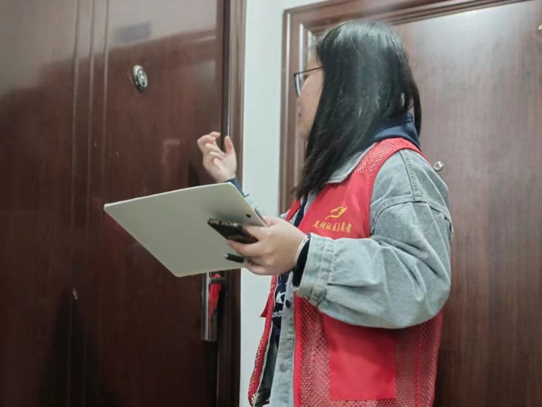常务副会长季茗带领10名志愿者赴江溪街道春阳社区开展“门铃行动”,现场走访约1260户。