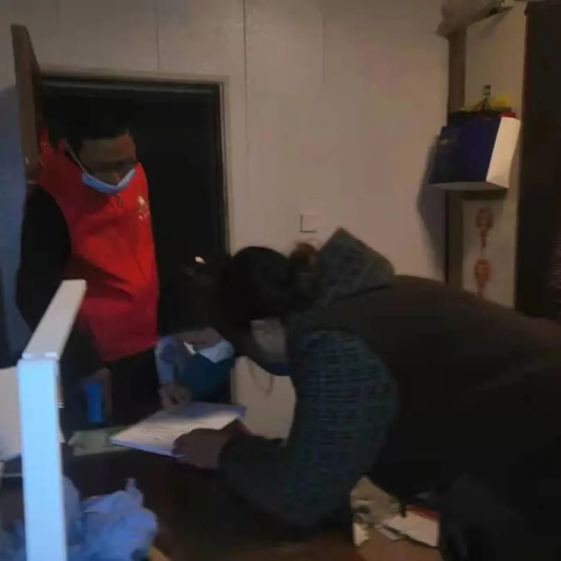 为了最大限度的保证入户有人在家,志愿者们克服困难,晚上入户。这几天,每天傍晚5点钟,“社会儿女”们就纷纷从四面八方汇聚青云门社区,5点半开始入户,夜幕下,社区里、楼栋内,不时见到身穿青绿色队服的“社会儿女”们的身影。(为了提高工作效率,所有志愿者都是独立作战,所以没能留下更多的入户镜头)