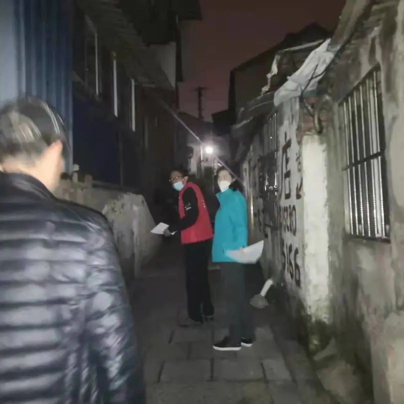 夜幕下走访的志愿者