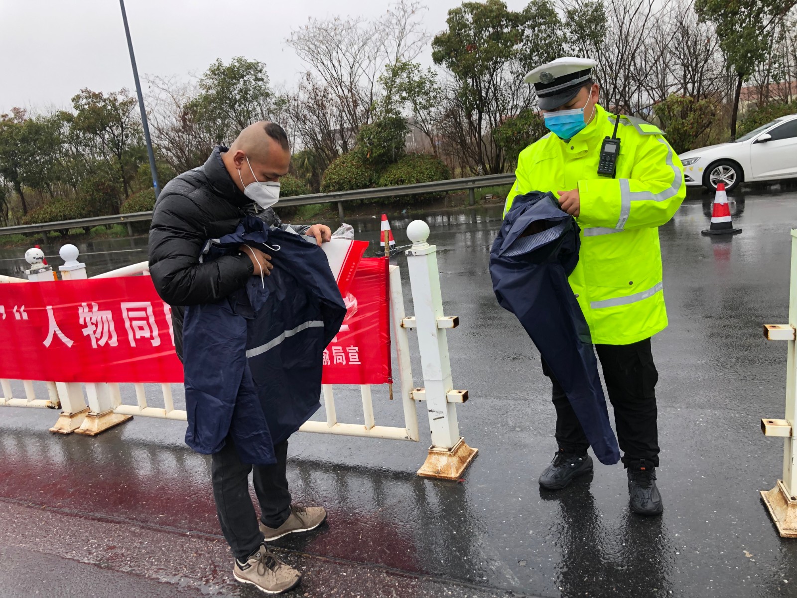 [盐城市]射阳县红十字会组织爱心市民向雨中坚守防控岗位的民警捐赠雨衣