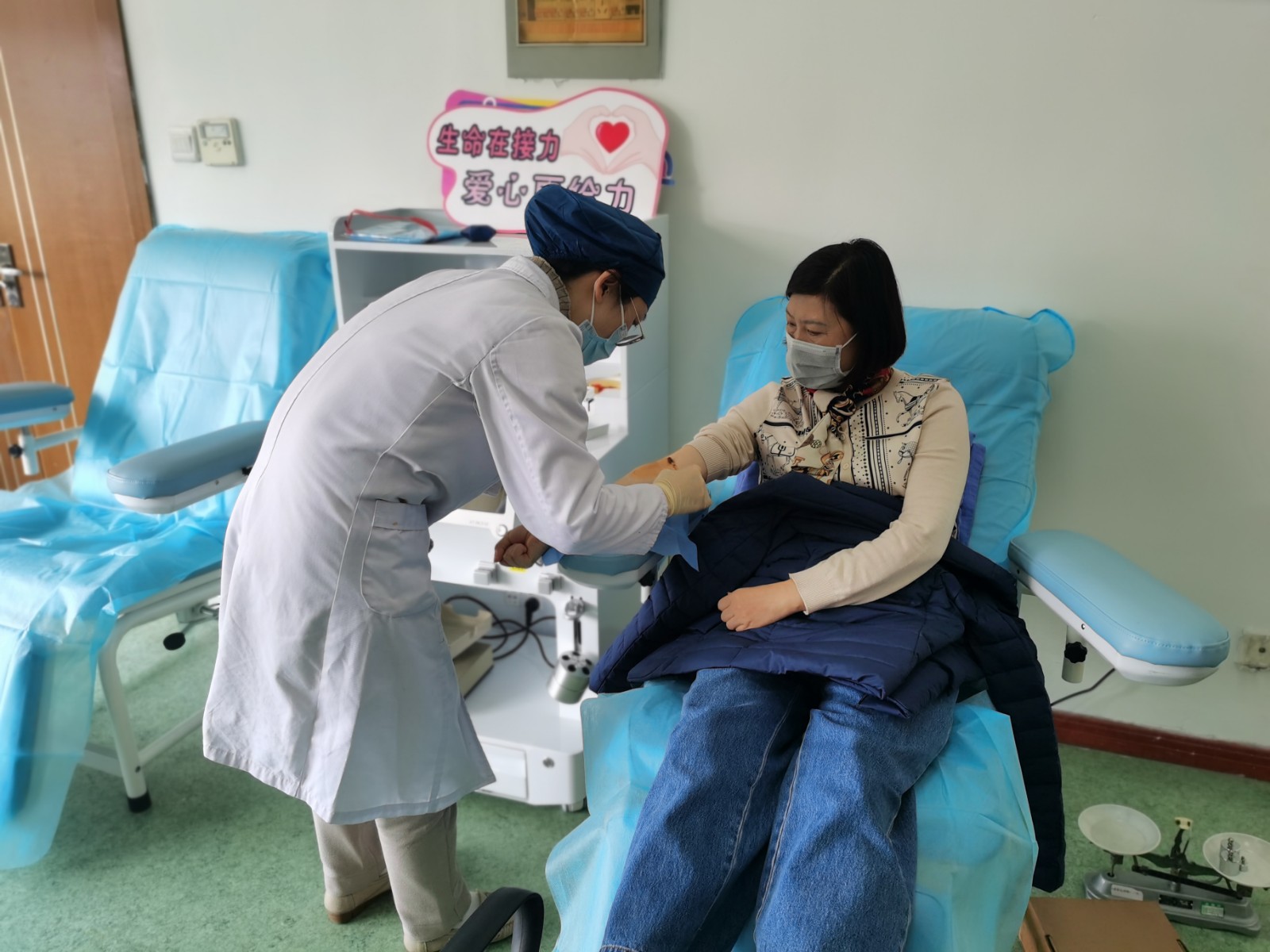 [镇江市]市红十字会工作人员为生命接力撸袖献血
