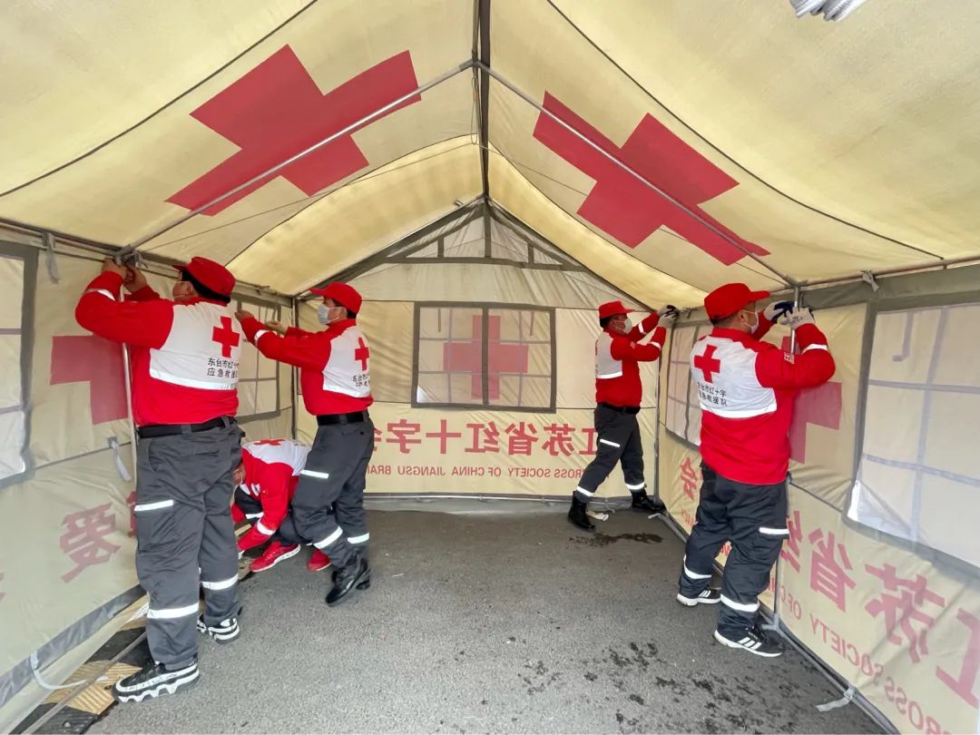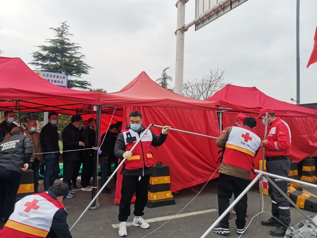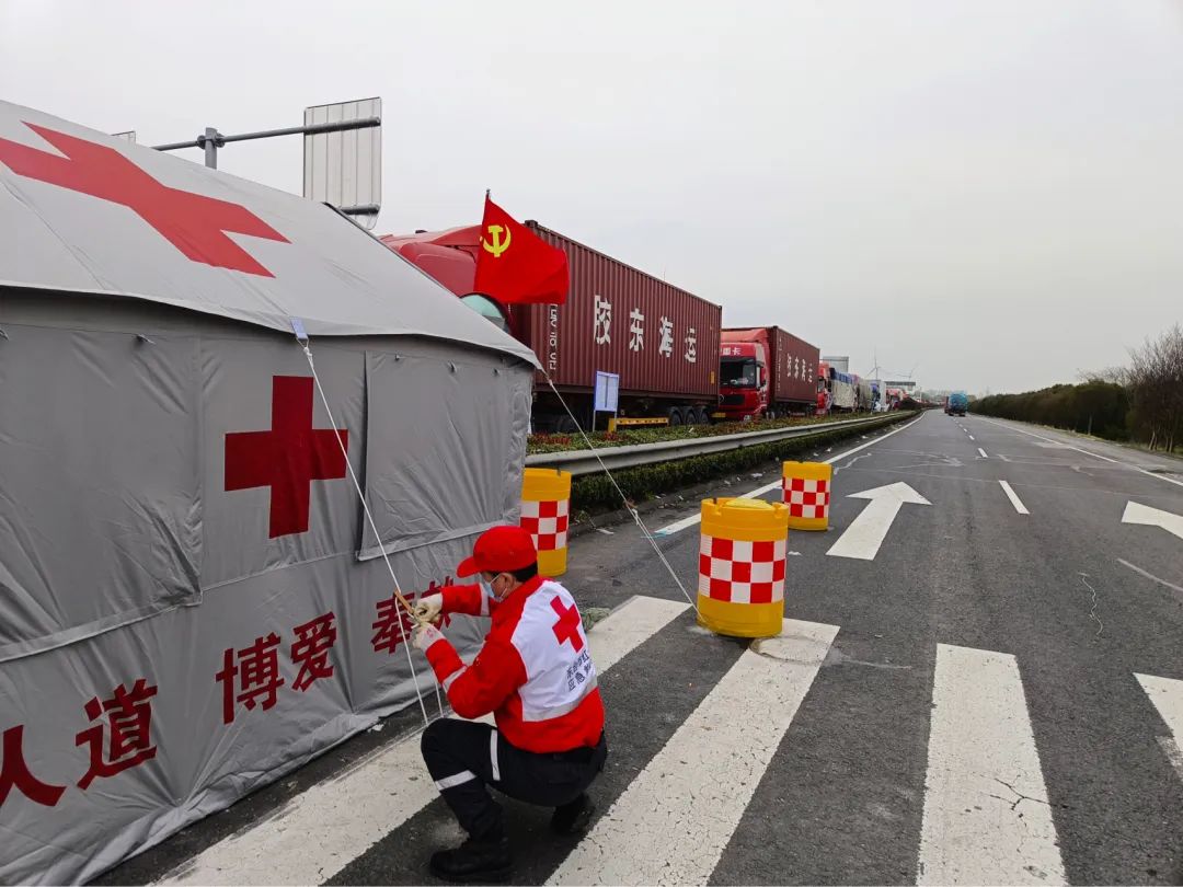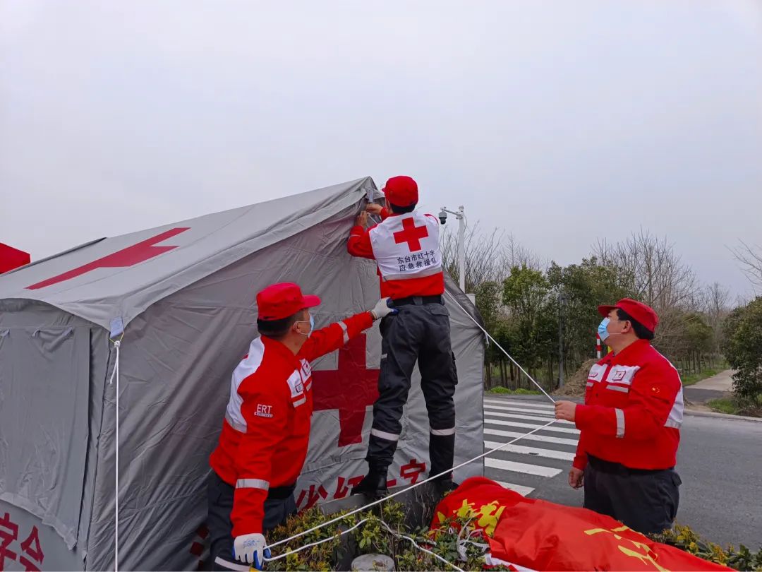 3月19-3月21日,东台市红十字救援队根据疫情防控需求,先后在东台高速卡口点、G228卡口点共搭建4顶帐篷,用于物资存储、隔离检测、宣传引导、值班值守等应急保障,助力东台疫情防控工作。距离东台市区最远的G228卡口点,往返行程160公里。截止目前出动红十字救援队队员42人次,服务时长为181小时。