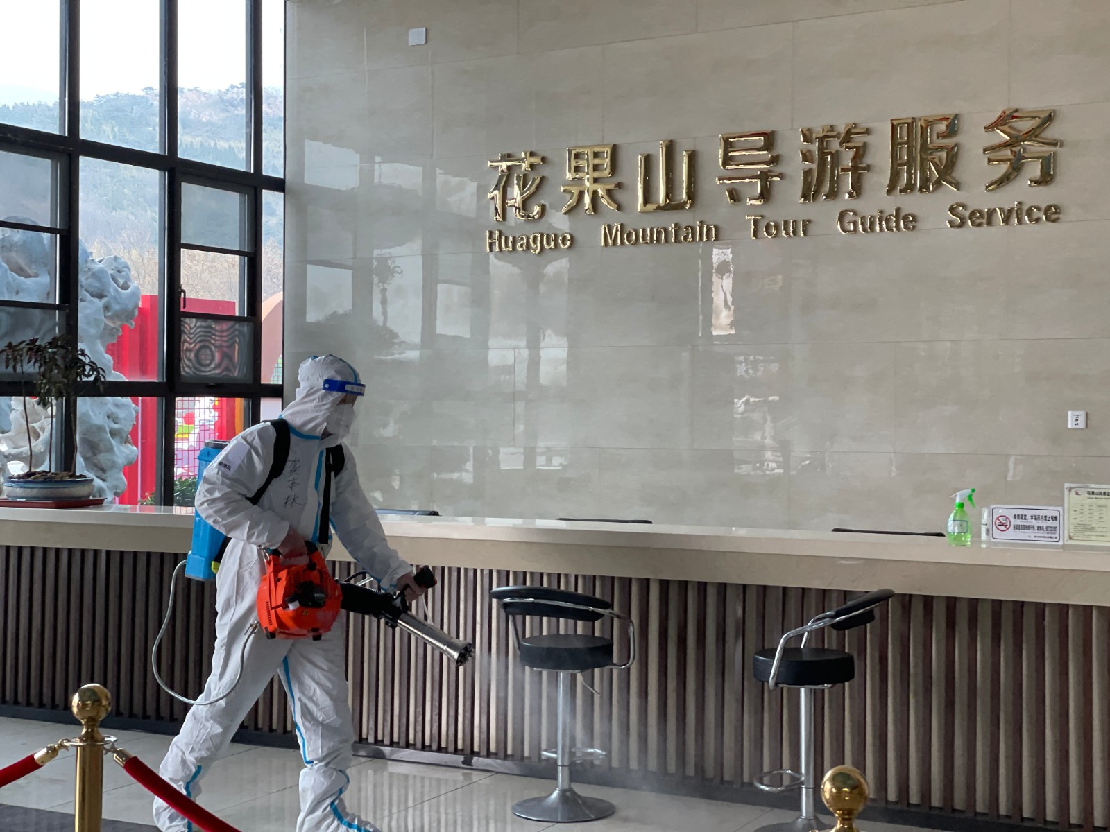 4月1日美丽的连云港市花果山风景区将恢复开放,为了助力疫情防控,3月30日,连云港市红十字会组织红十字救援队来到景区,着重对游客服务中心、售票处等人群密集场所进行了防疫消杀。