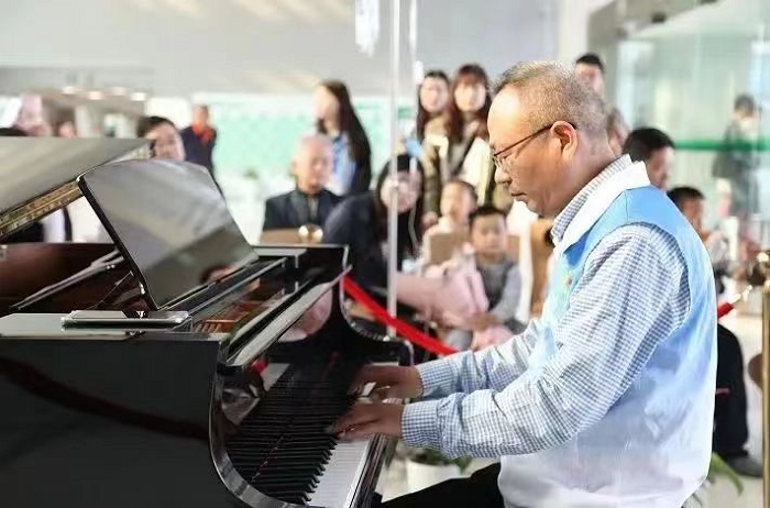 我是2019年7月1日通过朋友圈看到医院和红会的招募信息,就主动和医院老师联系,这是个乐于奉献、服务社会的平台,自己也有钢琴音乐方面的爱好,所以想要借助这个平台,把优美的琴声分享给广大的病人和医务工作者。