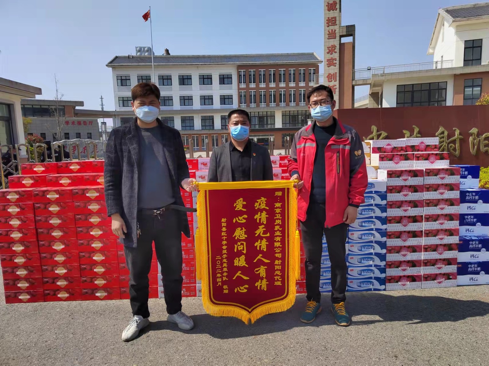 映霞、朱萍、唐东等志愿者在中共射阳县委党校疫情防控集中隔离点接受了本土企业家卫岗乳业射阳总代理顾云生先生对疫情防控一线工作人员的定向捐助。