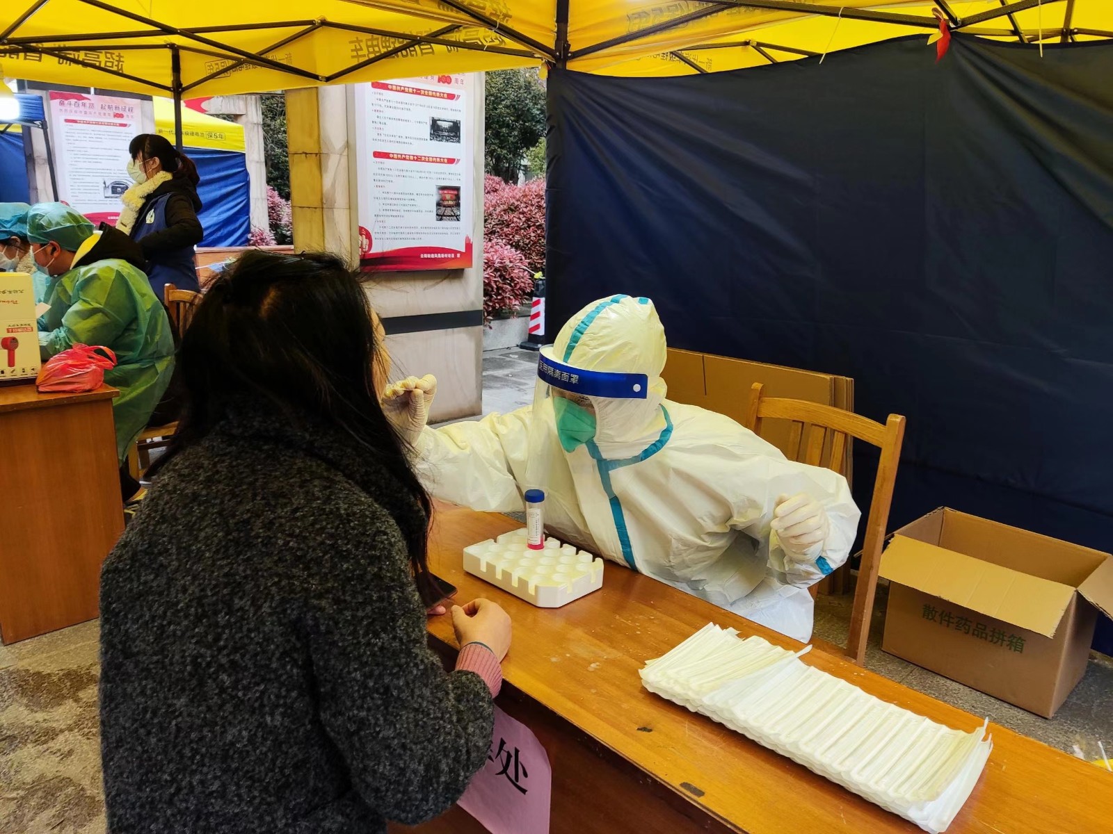 近日,防控压力陡增,医院大白利用休息时间主动报名参与社会抗疫活动,至各社区进行核酸采集,质管办周均至市民广场金鹰地上停车场进行片区核酸采集工作,身穿防护服连续奋战5小时,不吃不喝,认真仔细做好采集工作,根据分工出色完成自己所负责项目,高效且迅速的完成了420余人的核酸采集。周娟护士长积极参加凤凰新村城市绿洲社区的居民核酸采集工作,在采集过程中为患者答疑解惑,宣导疫情防控知识,完成了360余人的核酸采集工作。全天不间断的采集结束后已经汗湿衣衫,累得说不出话。