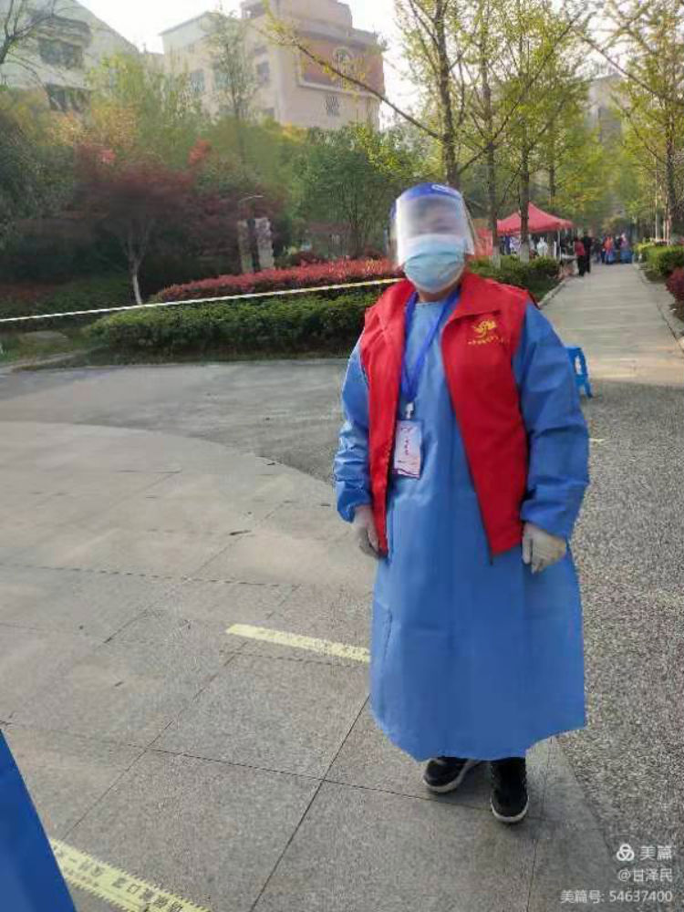 她,张静美,康复10周年。积极参加志愿者活动,穿上防护服,负责身份证登记采集工作,一坐就是数小时,汗水湿透了衣服,来不及喝一口水,受到正东路街道焦顶社区领导的夸赞。
