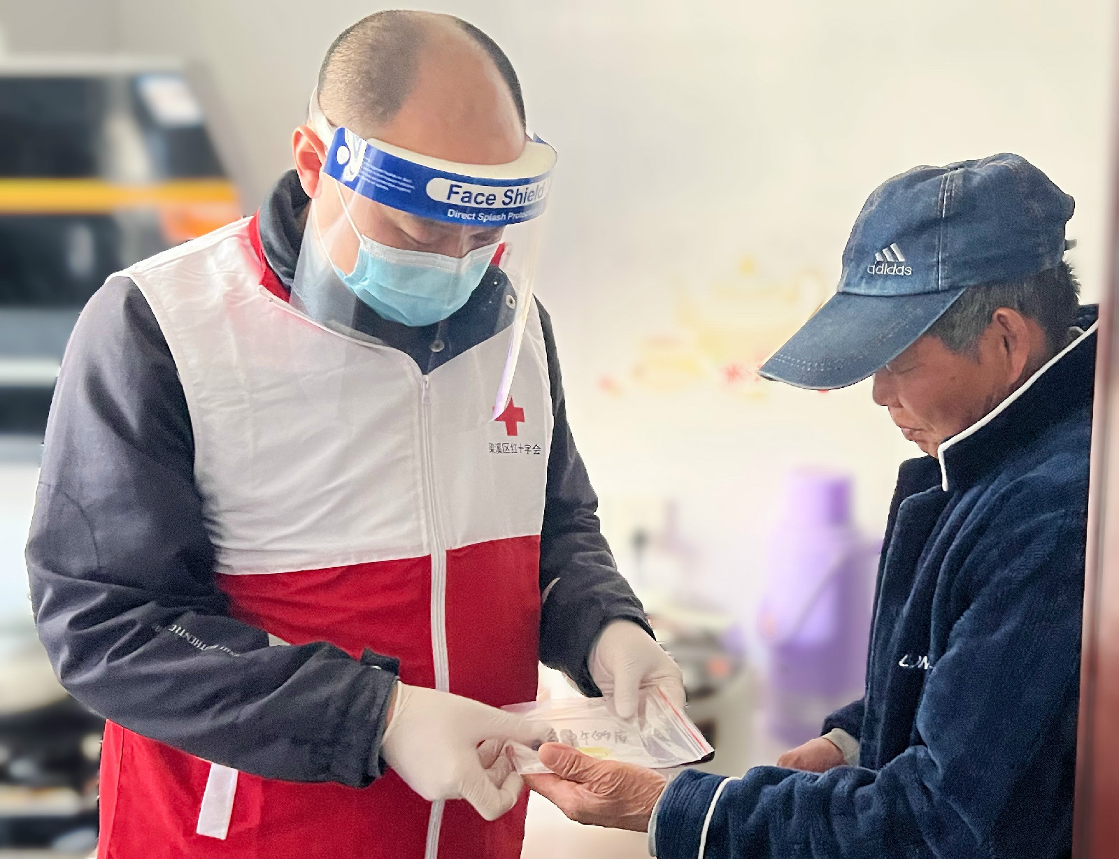 “你好,我外公被居家隔离,家里没有药了,你们可以帮忙购买一下吗?”塔影二村的王阿公在家居家隔离。但是王阿公患有阿尔兹海默症,需要每日服药,家里的药物已经吃完了。家人急得团团转,尝试给社区打了求助电话。红十字志愿者小薛得知这一情况,立即联系了王阿公的家人,问清了情况,第一时间采购了所需药物送到王阿公家中,并再三叮嘱服用方法及注意事项,确保王阿公能够按时、准确服药。
