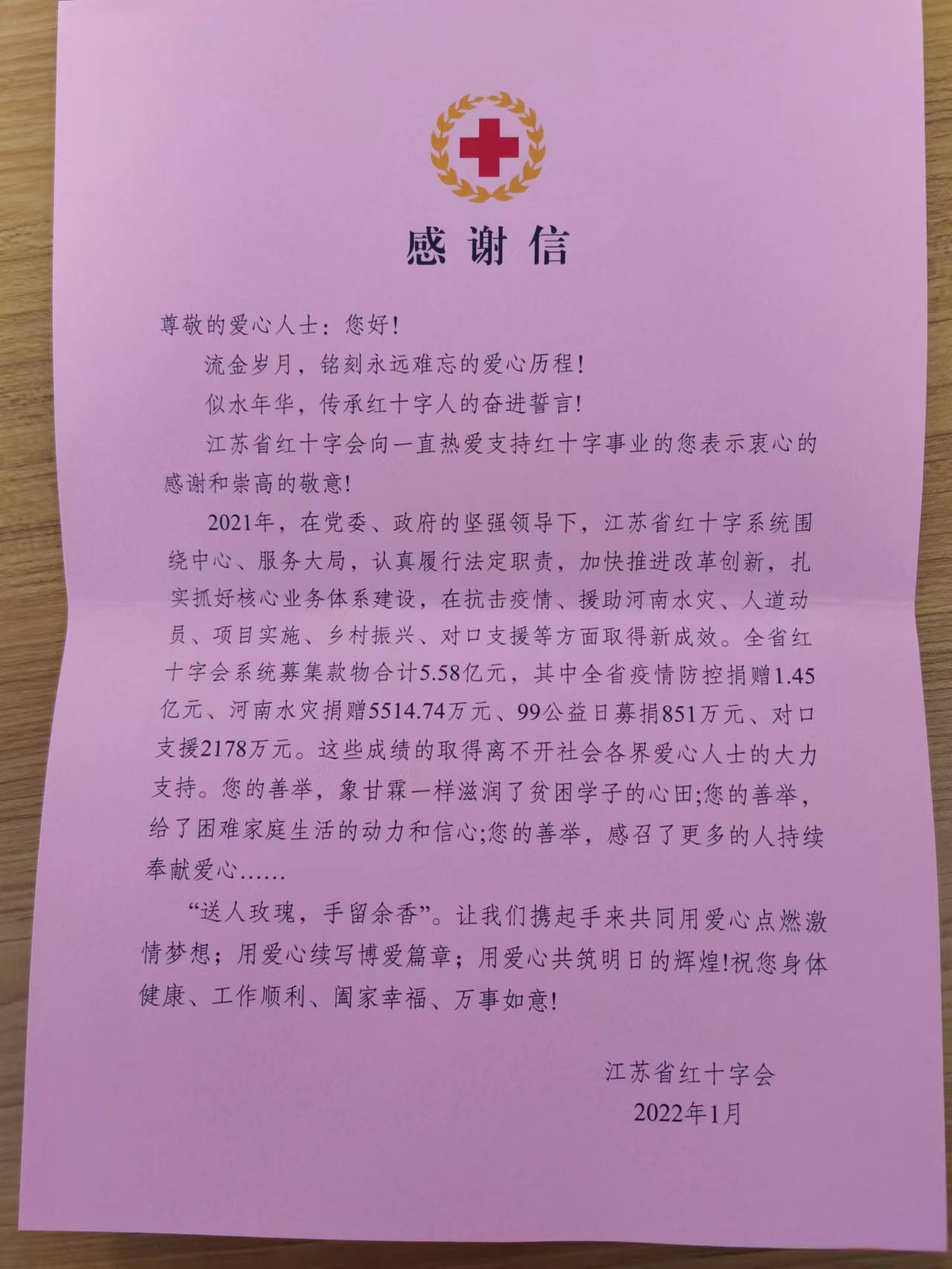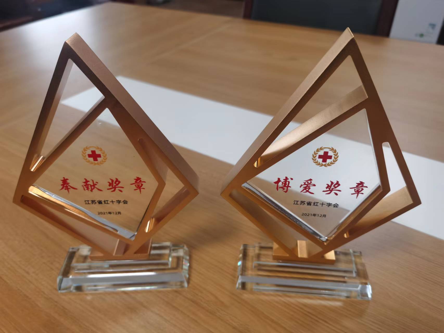 近日,江苏省红十字会对2021年度为江苏省红十字事业作出突出贡献的捐赠人进行了表彰,江苏悦奥商贸有限公司、江苏月生玉商贸有限公司榜上有名,分别荣获江苏省红十字会授予的红十字“博爱奖章”和“奉献奖章”。