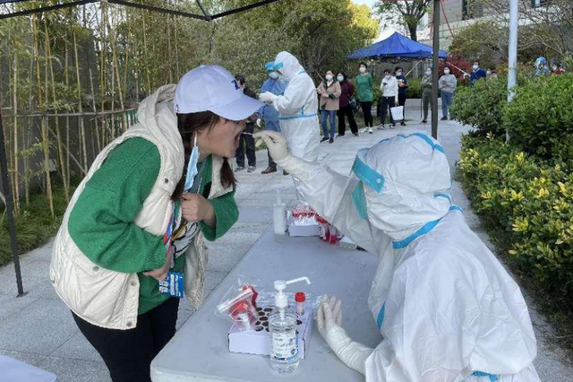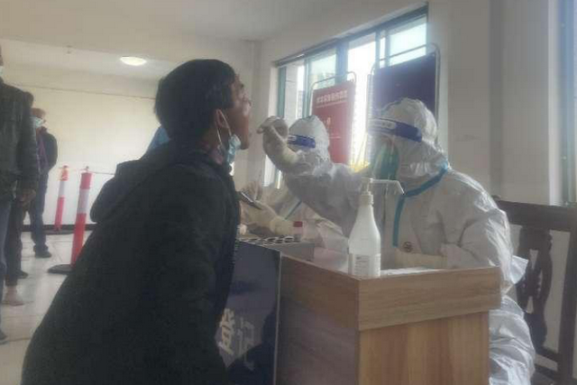 随着天气的逐渐转暖,厚重的、密不透风的防护服下的我们早已汗流浃背。我不记得我每天要重复多少次“请把头微仰,嘴张大,充分暴露您的咽喉壁”,口唇早已成了干涸的田地,唯有一场适时的雨水浇灌方能救它于水深火热之中。我在心中告诉自己要坚持,方能不辜负作为医务工作的担当和使命。当我用无菌长棉签在群众的咽喉壁来回擦拭的时候,当我透过面屏看到群众担忧的眼神以及对自己有没有被感染充满了不确定时,我告诉自己,快一点,再快一点,这样我就能早点将采集标本转运到检测基地,群众们就能早点知道检测结果,就能早一点安心。