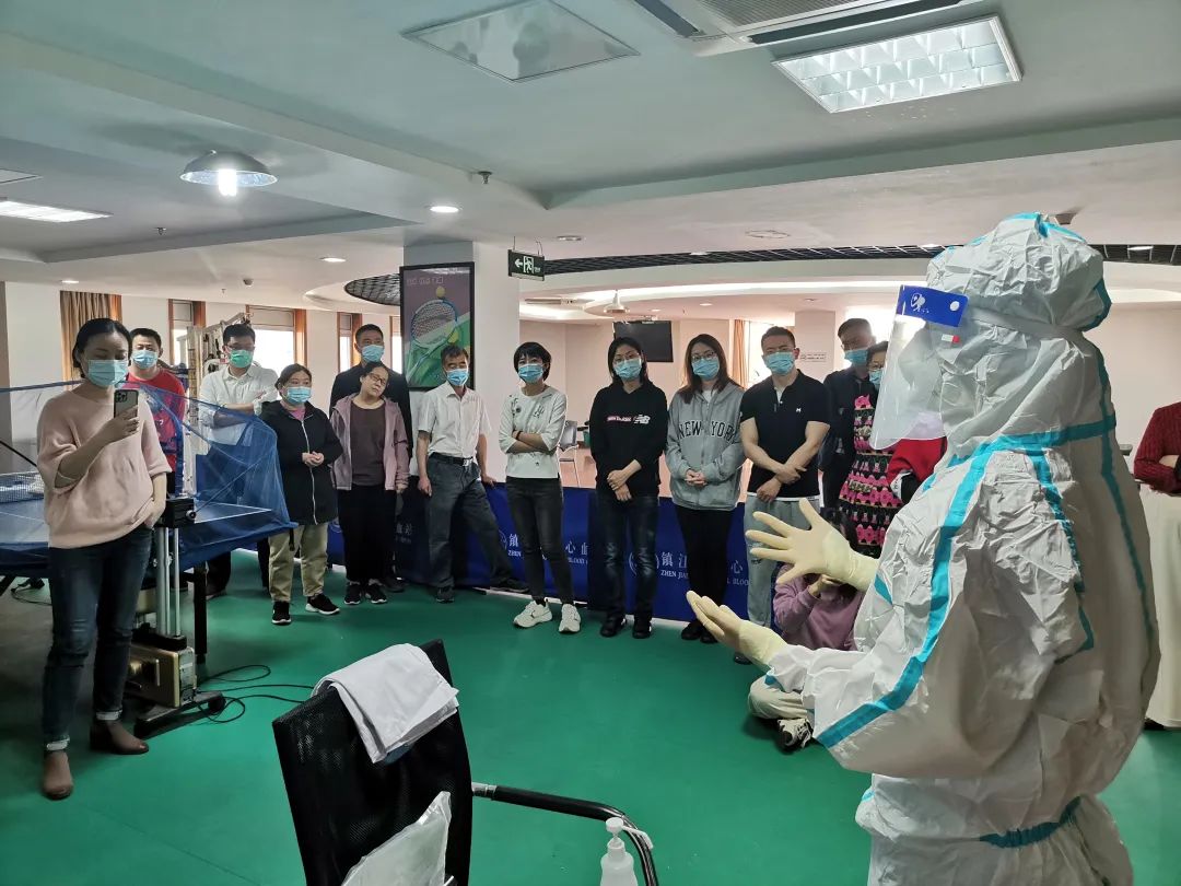 4月6日、11日,市中心血站两次开展穿脱防护服培训。培训内容包含穿脱防护服示范、涉及用物准备、穿脱步骤、注意事项、防护及消毒处理步骤等具体细节,部分受训人员进行了穿脱防护服练习。此次培训最大限度减少职业暴露风险,为医护人员在疫情来临时能迅速投入战斗奠定了基础。