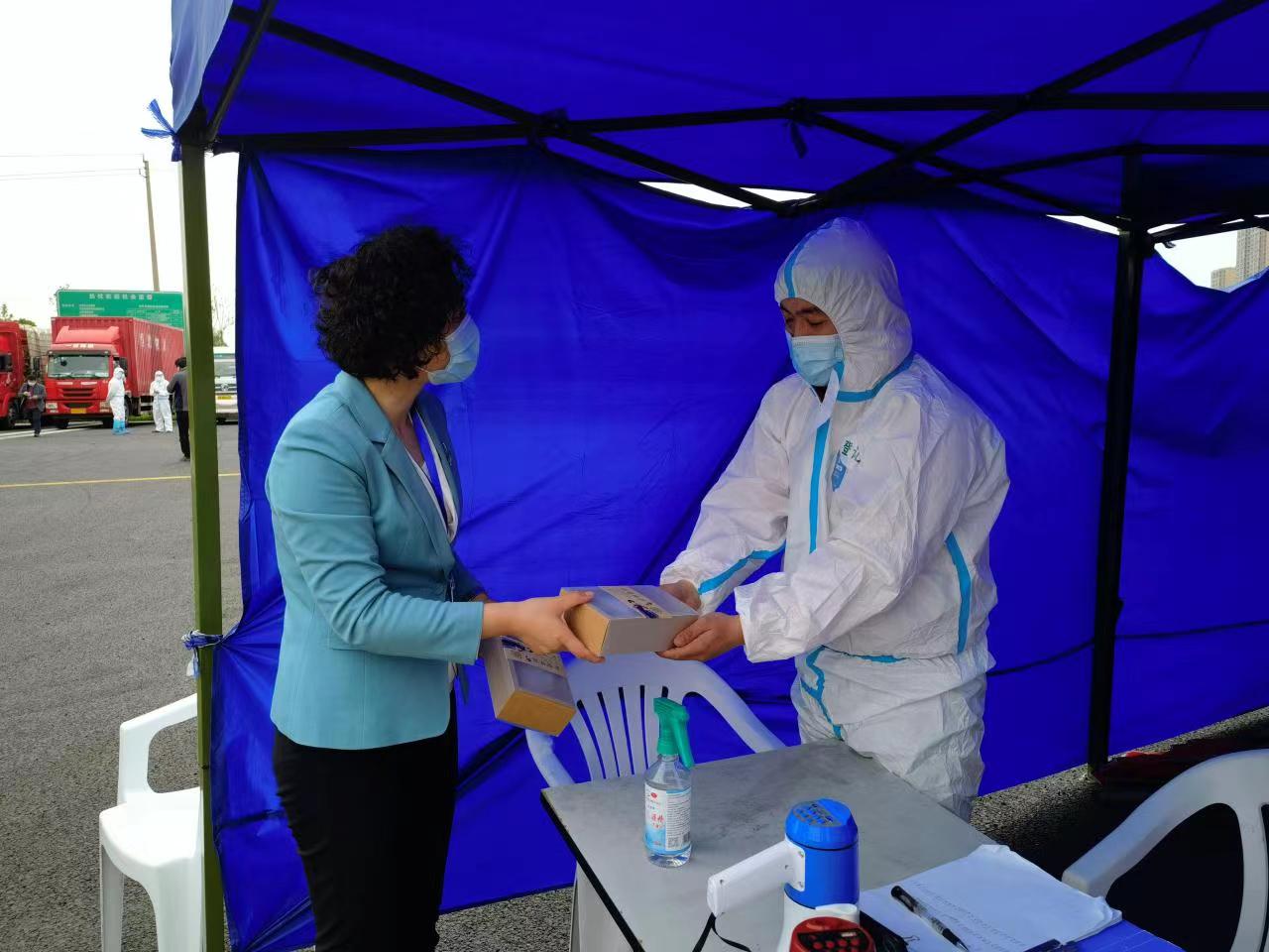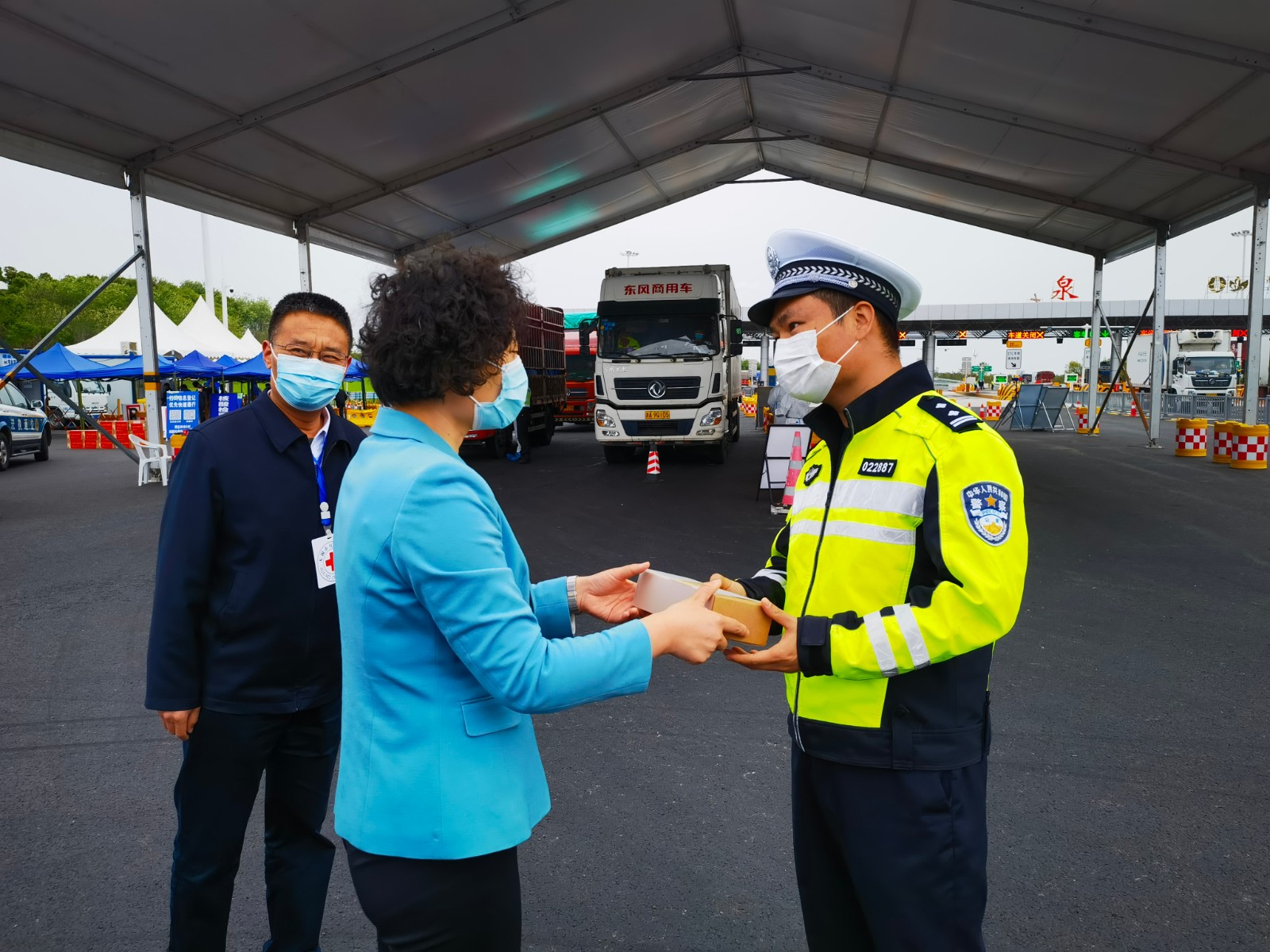 “战斗在一线的抗疫同志们,你们辛苦了,注意保重身体!”市红十字会常务副会长陈烈蓉、星洲医药董事长周文娅带领有关人员,现场将承载着一份份暖暖爱的抗疫中药制剂送给高速路口防疫站点的“大白”,感谢大家在疫情期间的坚守。