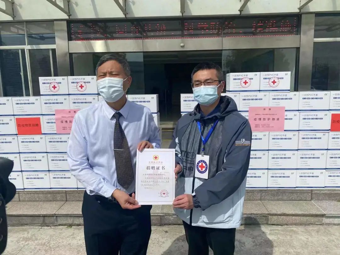 [盐城市]东台爱心企业江苏华源医疗科技有限公司向市红十字会捐赠手套