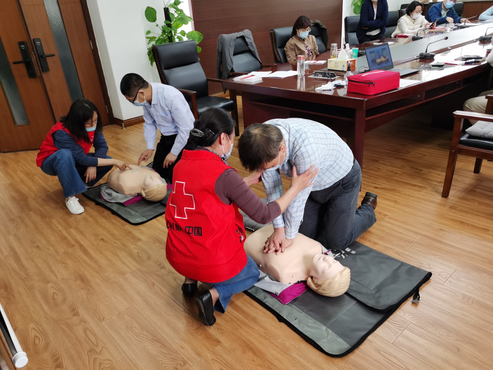 2022年4月14日、20日,南京市红十字会联合致公党南京市委、南京市社会科学界联合会、南京市委网信办、中国民主建国会南京市委员会、南京市妇女联合会5家单位在做好常态化疫情防控前提下,安排救护培训场地,面向10余家机关单位开展了心肺复苏(CPR)和自动体外除颤器(AED)使用的应急救护培训,以进一步提升市级机关工作人员的自救互救能力。共有100余名机关干部职工参加了红十字应急救护培训。