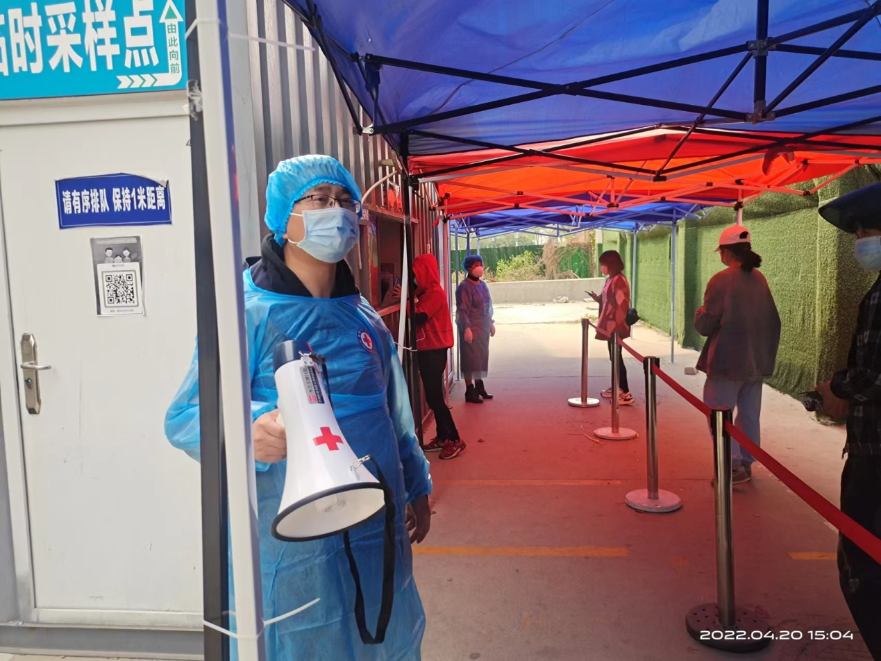 在平时利用周末节假日时间参与社区疫情防控的同时,4月19-20日,市红十字会机关党支部9名党员主动请缨,分批次到亭湖区文峰街道卫生服务中心核酸采样点,协助扫描采样码、维持现场秩序,指导帮助老人注册“我的盐城”APP……党组成员、副会长徐维林带头参加服务。